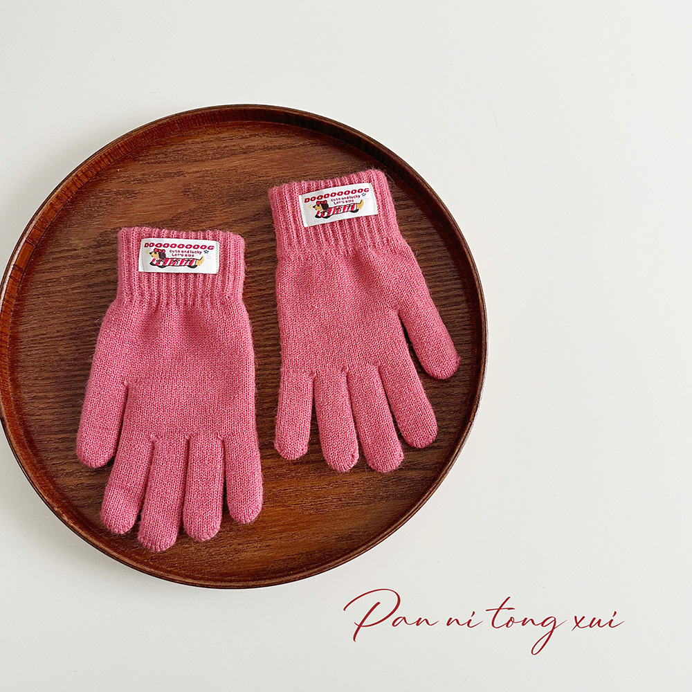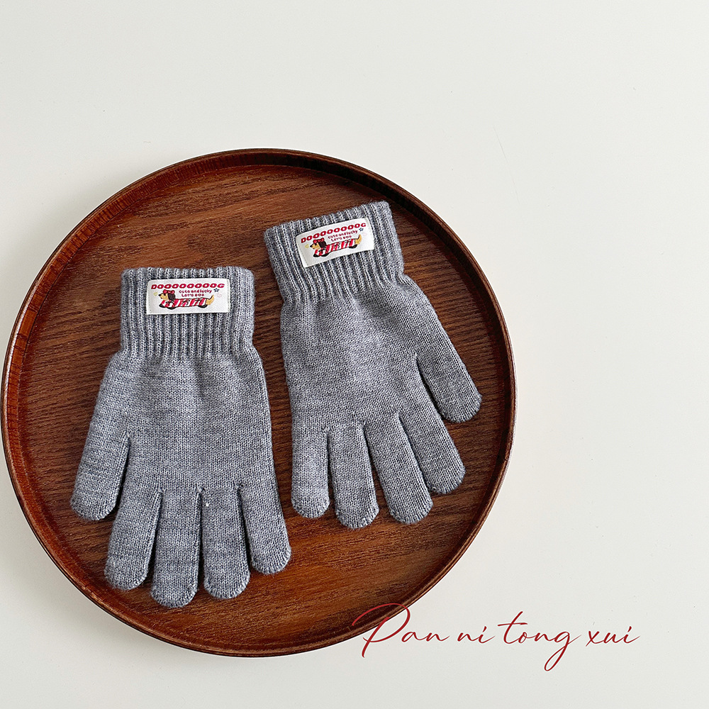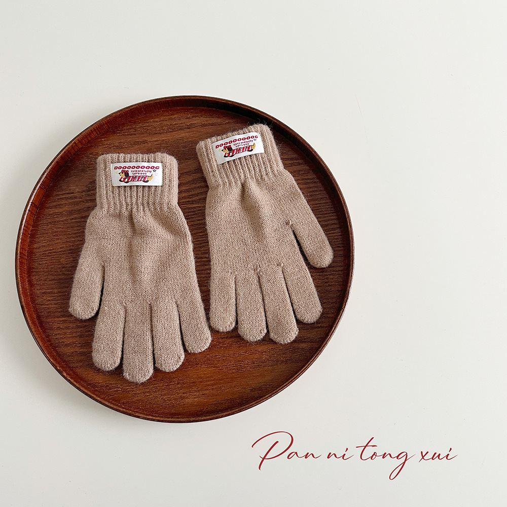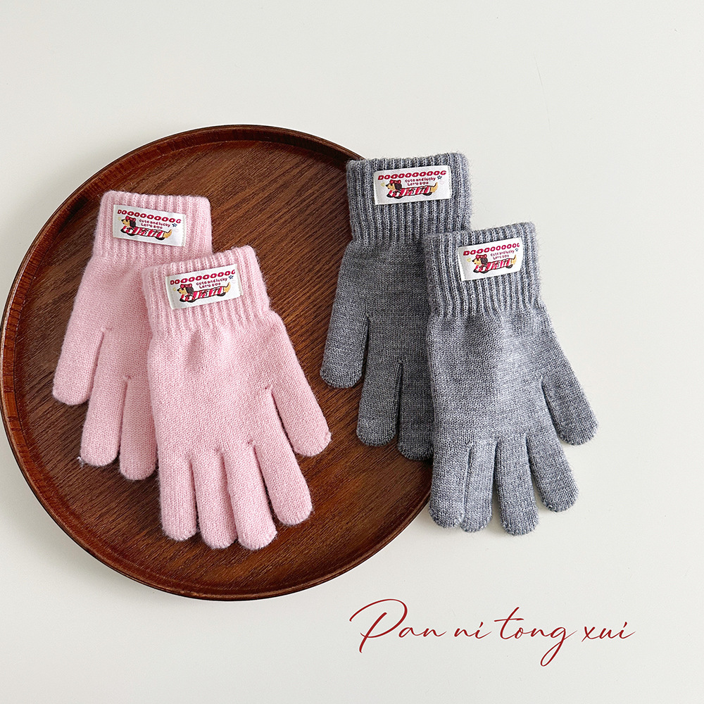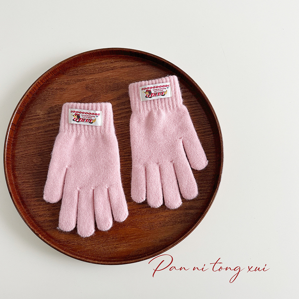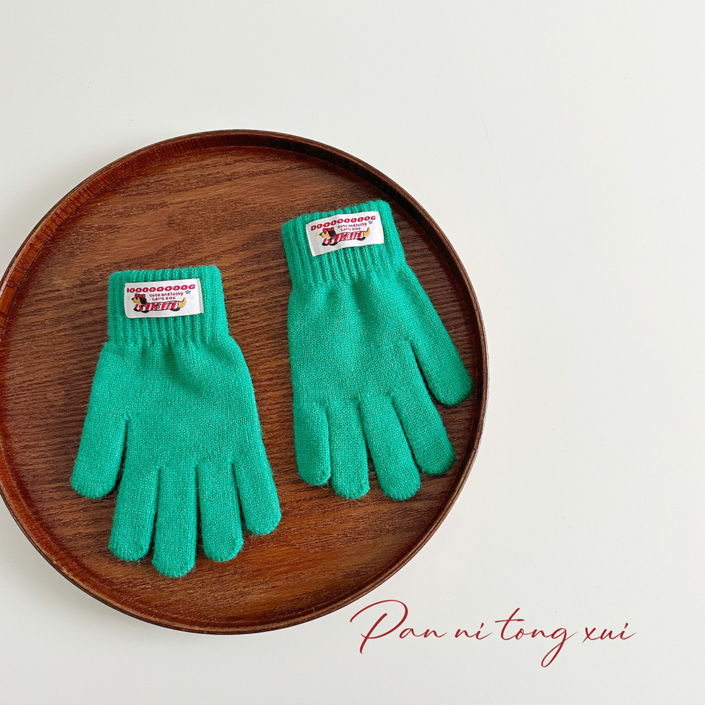 한국 따뜻한 장갑 여성의 겨울 다섯 손가락 터치 스크린 중대형 어린이를위한 니트 울 장갑 솔리드 컬러 학생 손가락 장갑