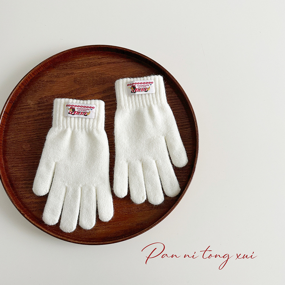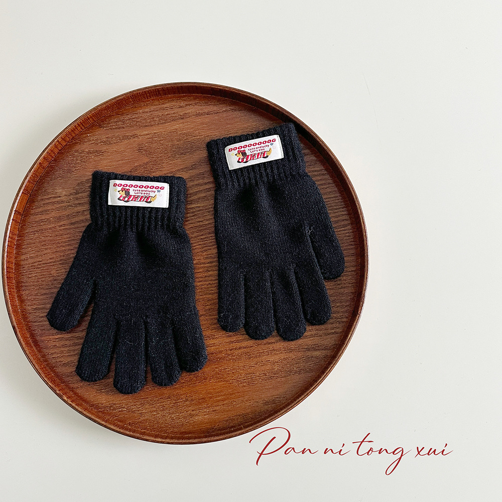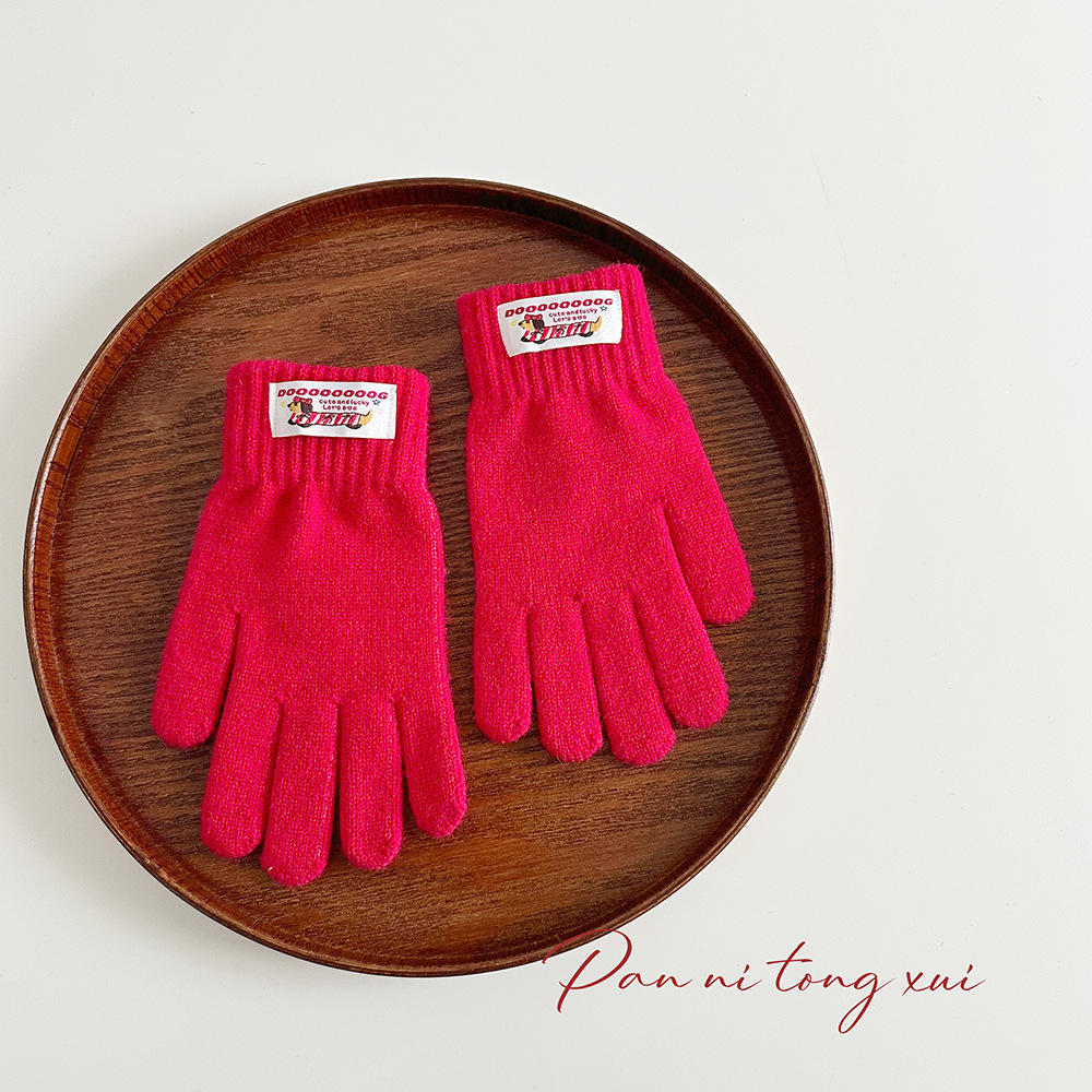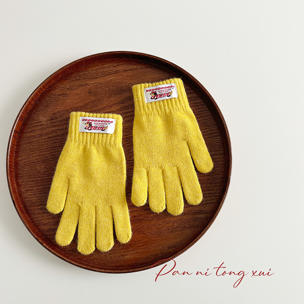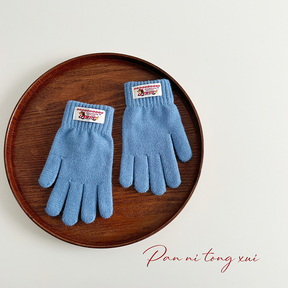 한국 따뜻한 장갑 여성의 겨울 다섯 손가락 터치 스크린 중대형 어린이를위한 니트 울 장갑 솔리드 컬러 학생 손가락 장갑