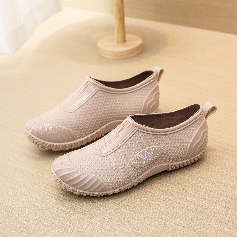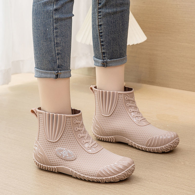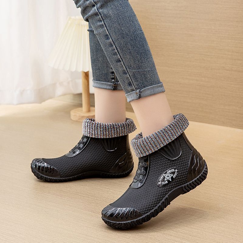비 신발 여성 물 신발 새로운 방수 미끄럼 방지 장화 중형 및 짧은 배럴 사계절 외부 착용 작업 신발 중간 배럴 착용 방지 패션스토어 가기