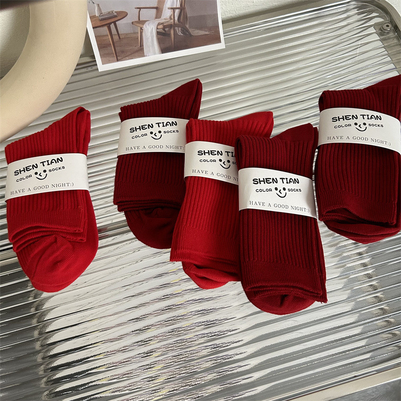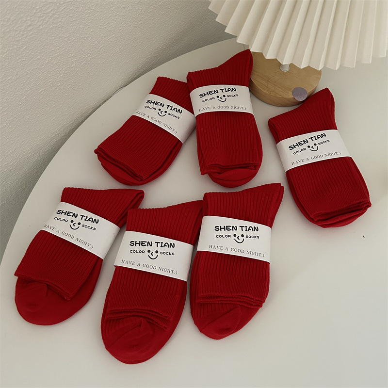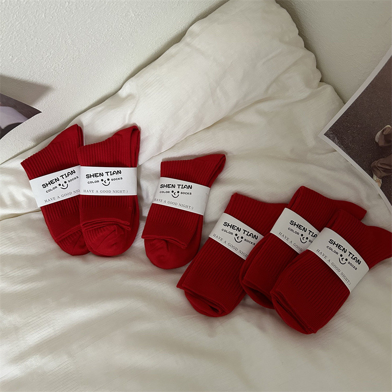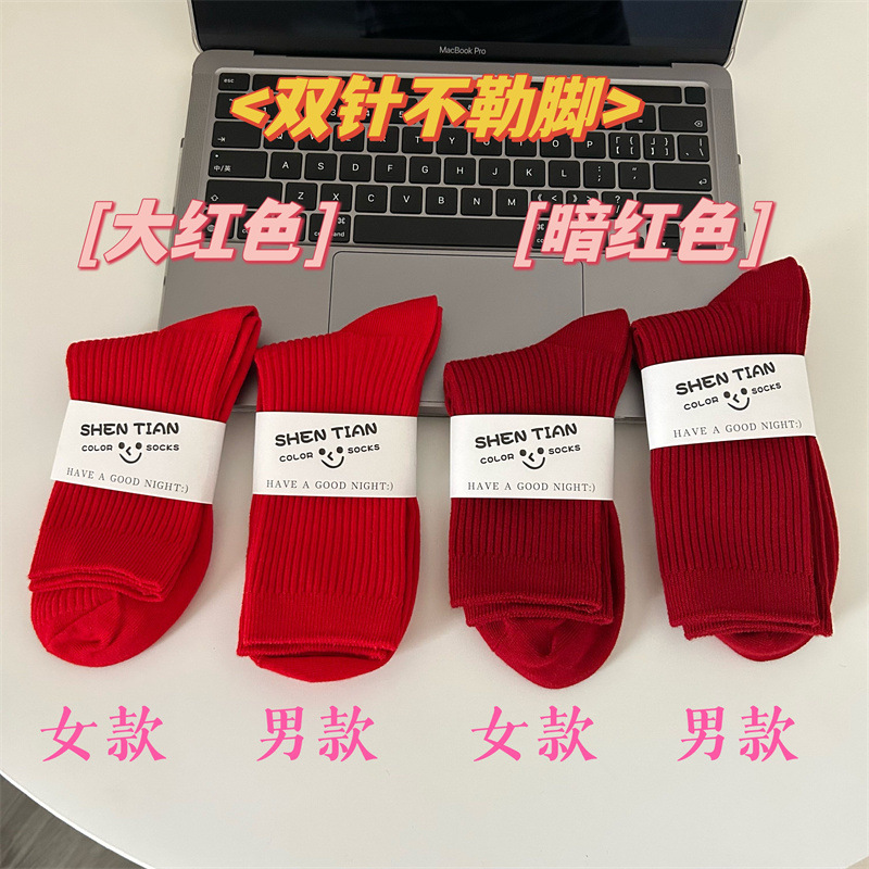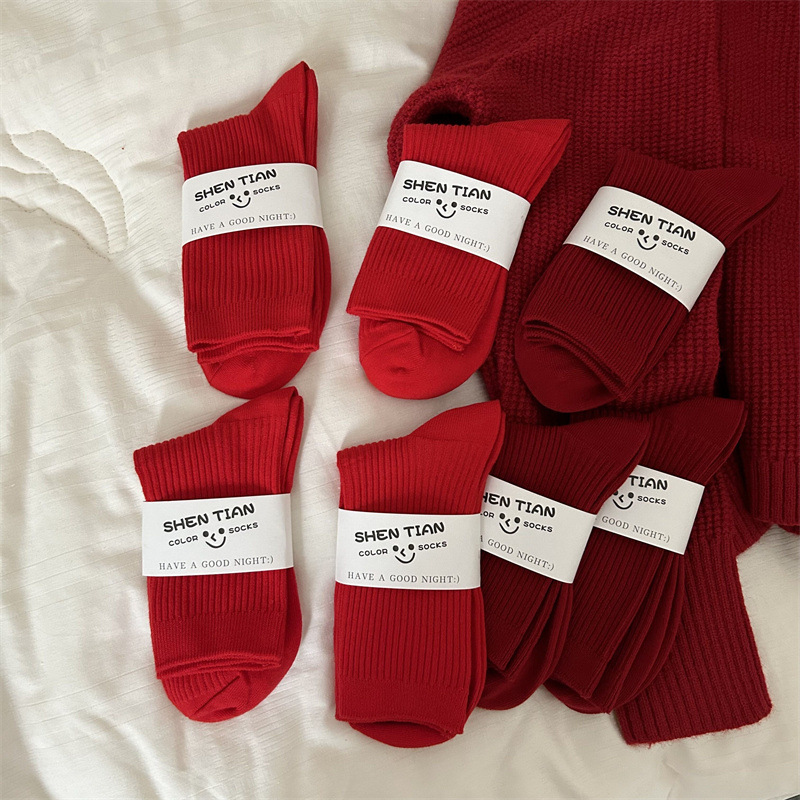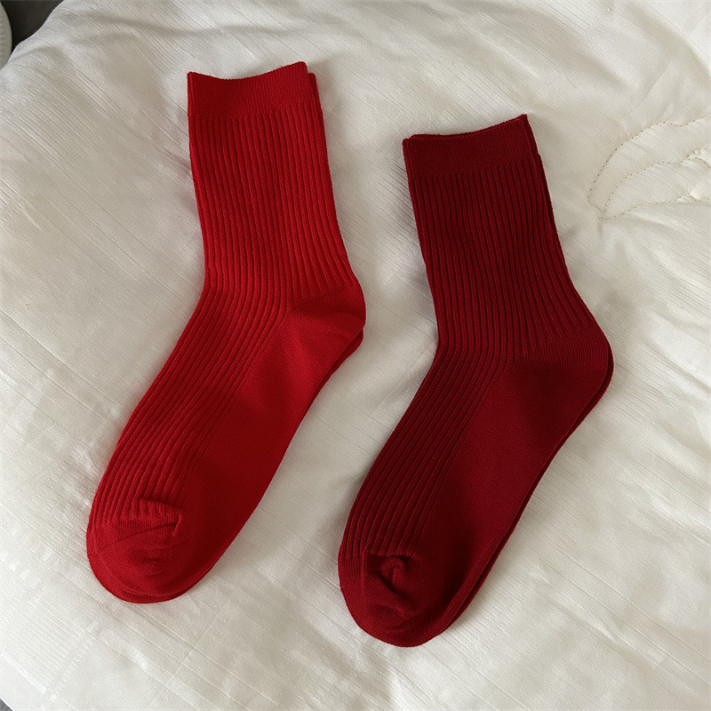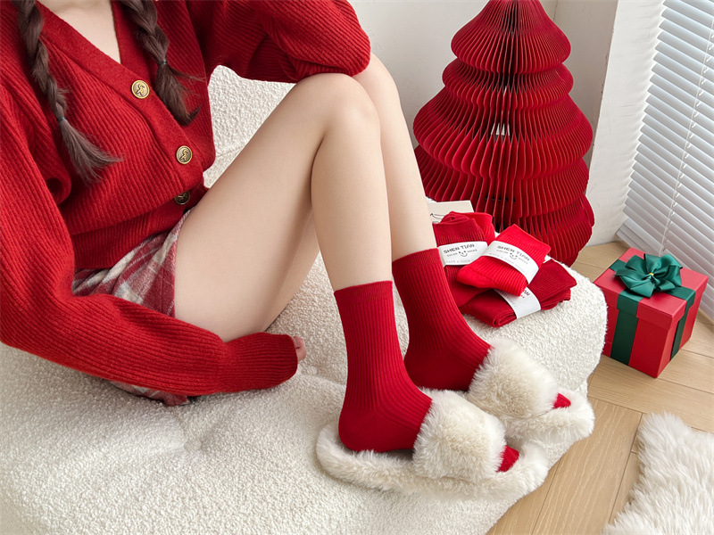 뱀의 가을 및 겨울 결혼식 해에 여성을위한 다크 레드 양말 버건디 커플 코튼 양말 남성을위한 새해 큰 빨간 스타킹