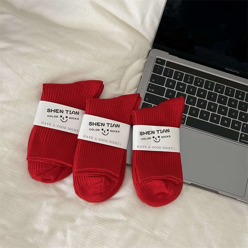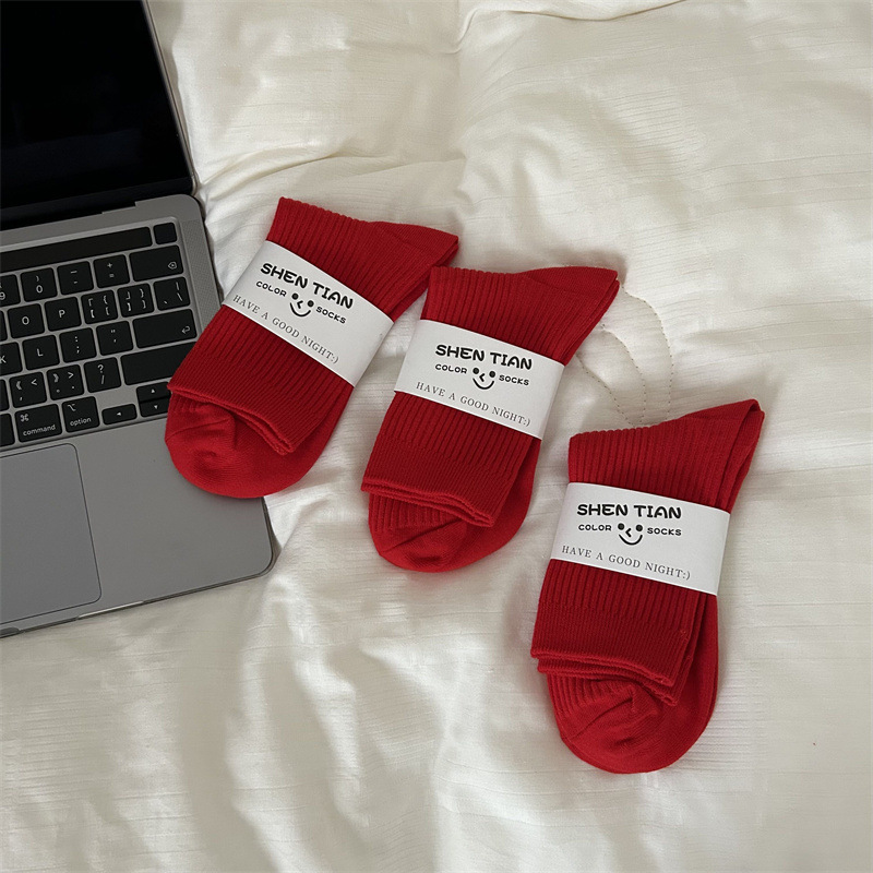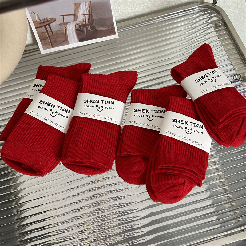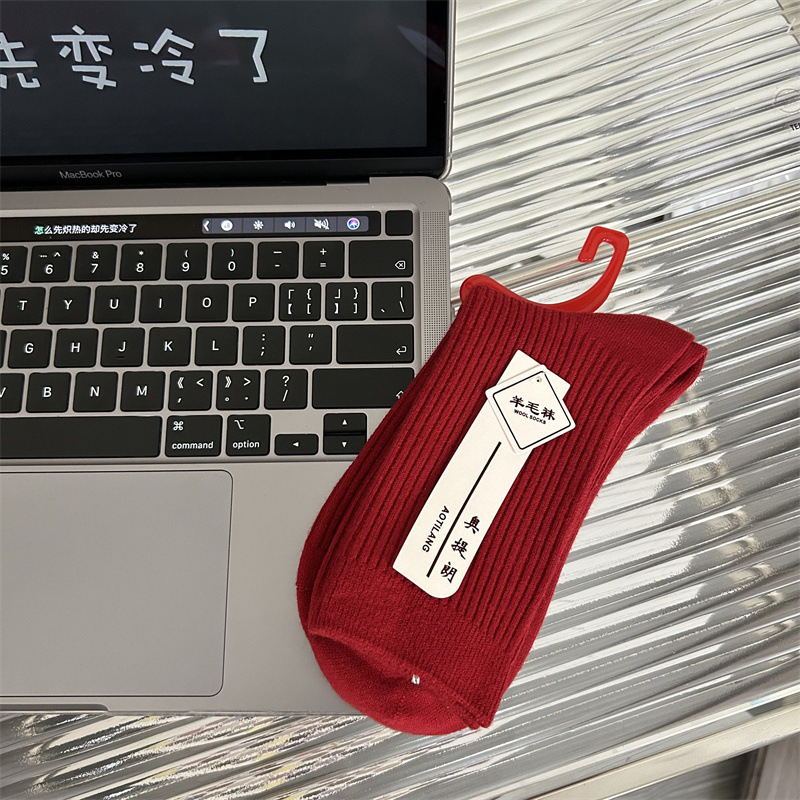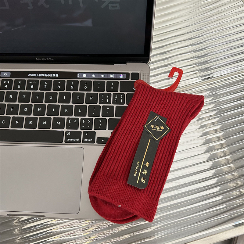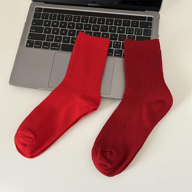 뱀의 가을 및 겨울 결혼식 해에 여성을위한 다크 레드 양말 버건디 커플 코튼 양말 남성을위한 새해 큰 빨간 스타킹