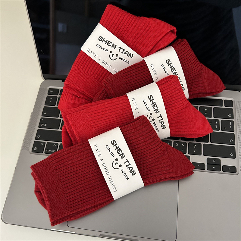 뱀의 가을 및 겨울 결혼식 해에 여성을위한 다크 레드 양말 버건디 커플 코튼 양말 남성을위한 새해 큰 빨간 스타킹스토어 가기
