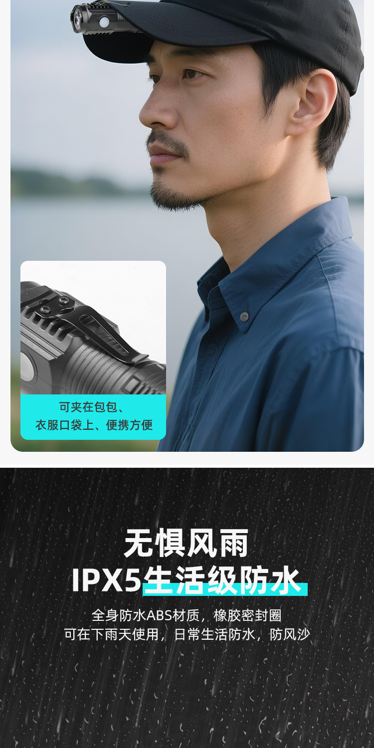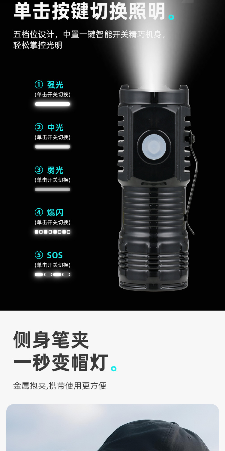 새로운 강한 가벼운 장거리 손전등 미니 휴대용 작은 손전등 야외 다기능 모자 램프 손전등