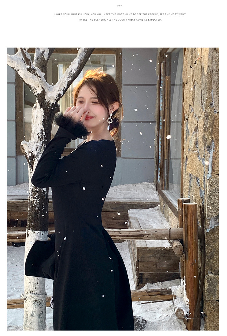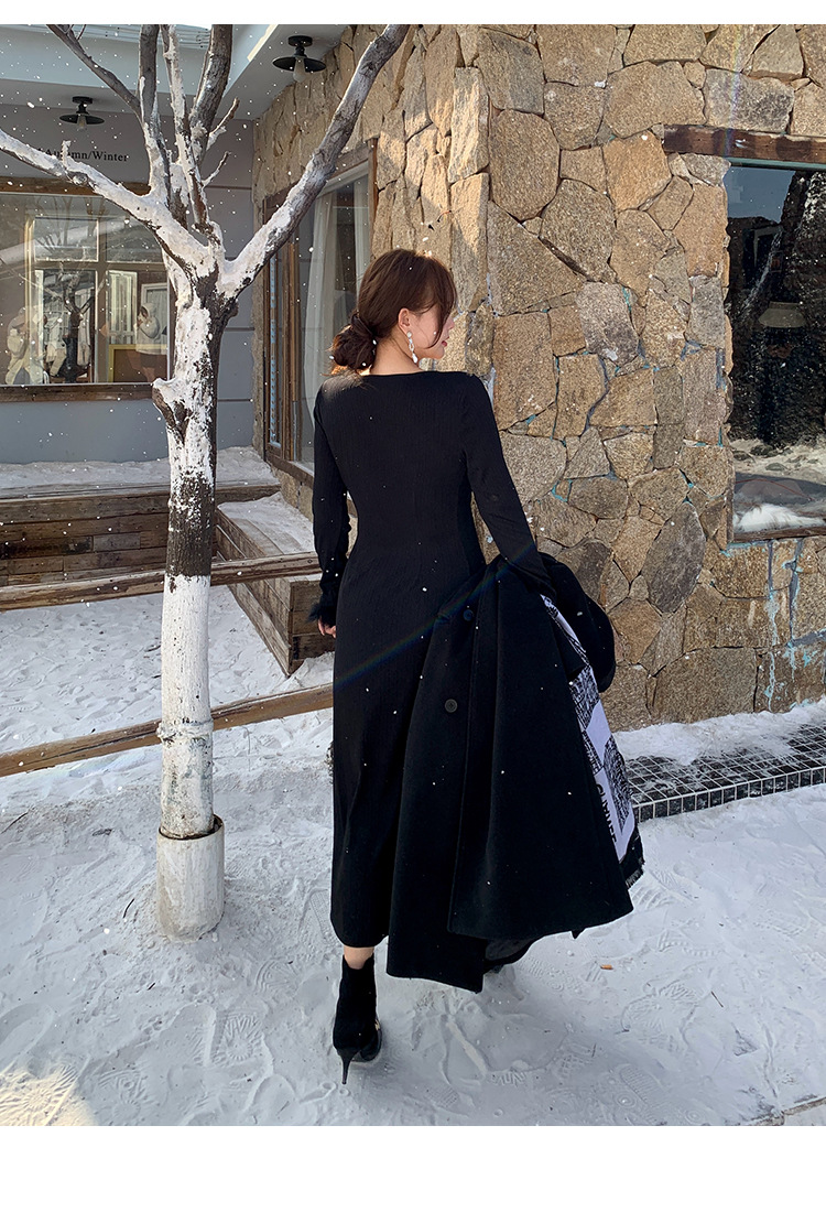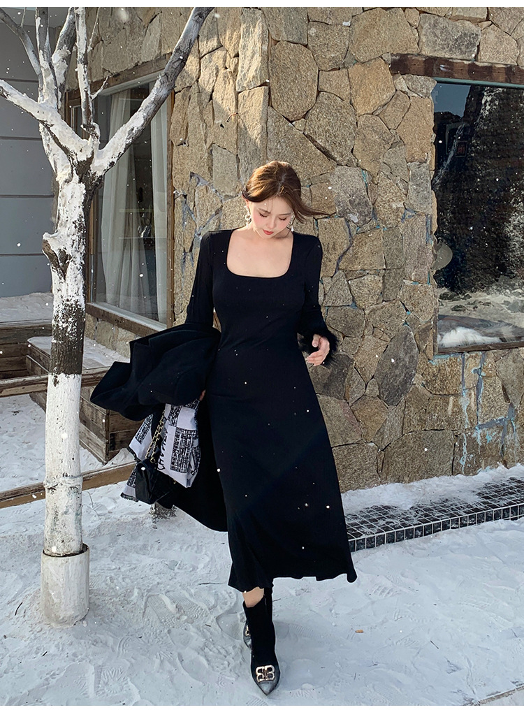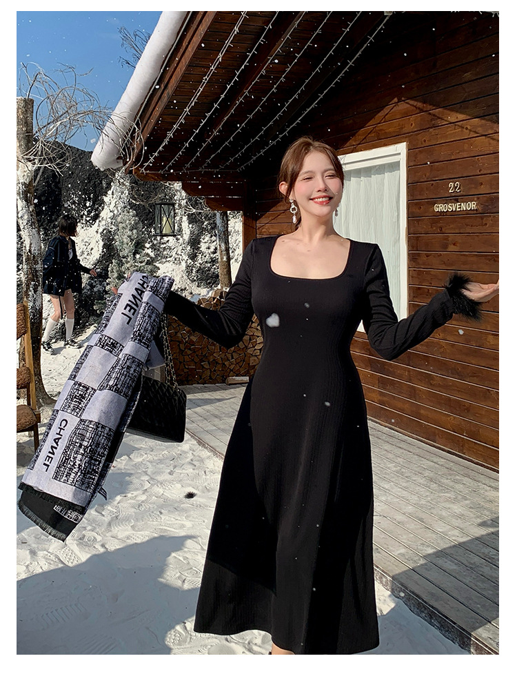 플러스 사이즈 여성 하이 엔드 프랑스 레트로 스퀘어 넥 슬림 내부 기지 원피스 통통녀 가을과 겨울 긴 원피스 1994스토어 가기