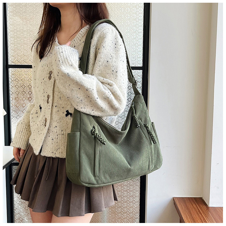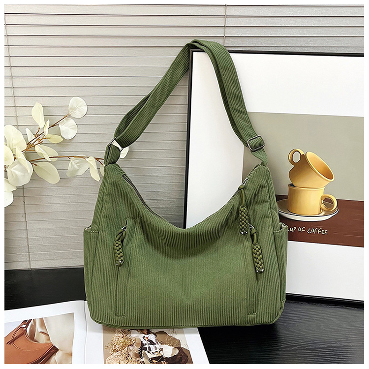 국경 간 크로스 바디 토트 백 대용량 코듀로이 패션 여성 가방 2024 새로운 간단한 올 매치 언더암 숄더 백