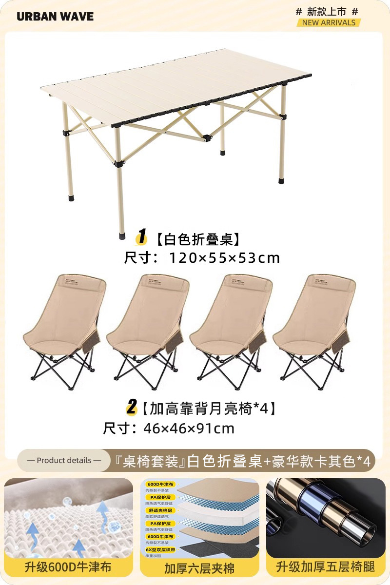 • "테이블과 의자 세트" 럭셔리 라이트카키*4+120cm 접이식 테이블
