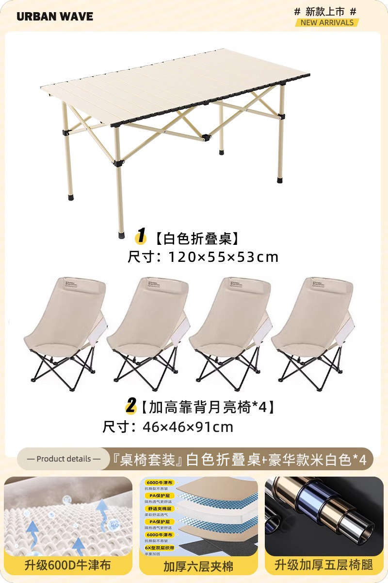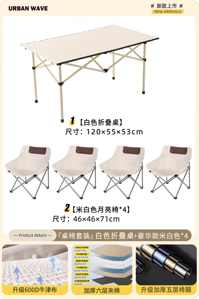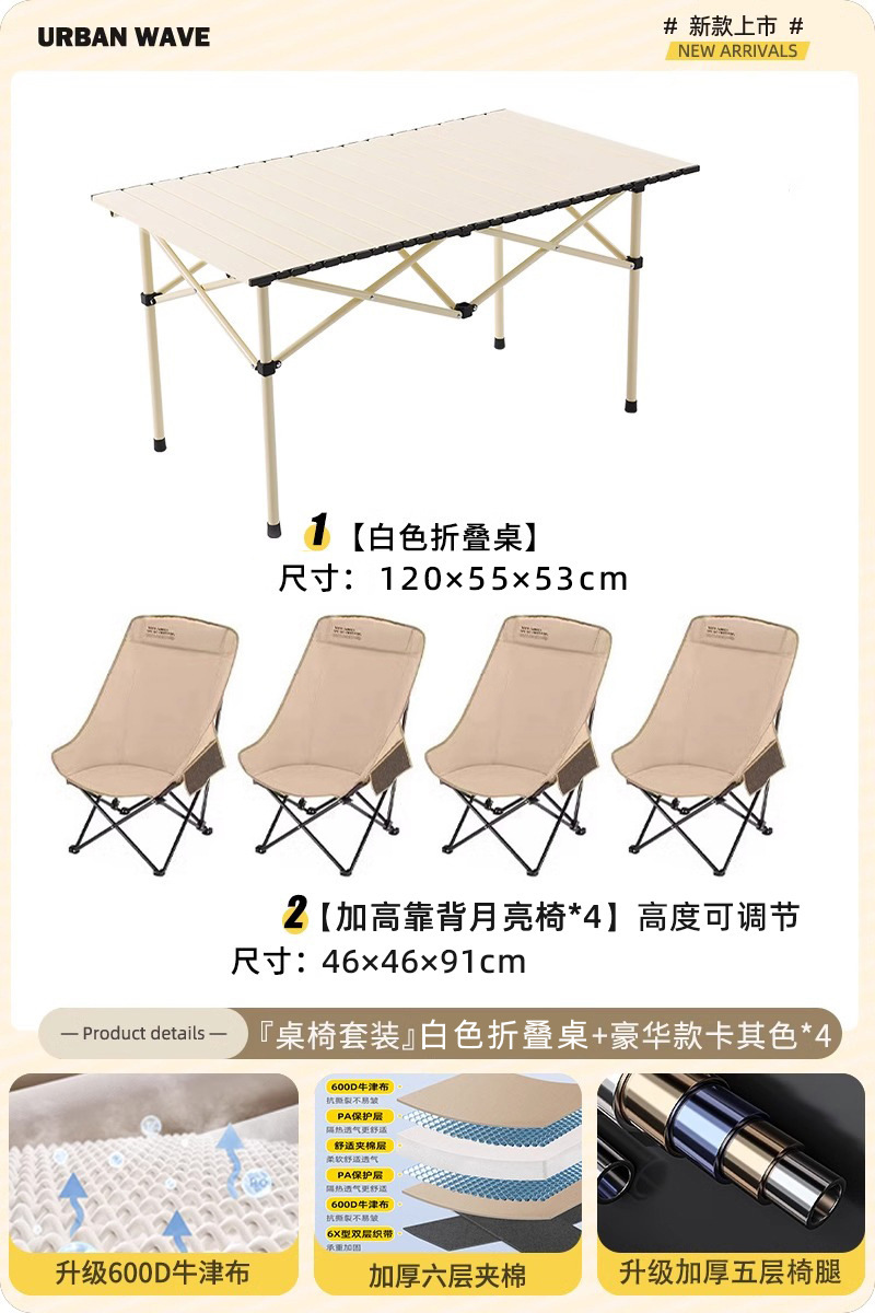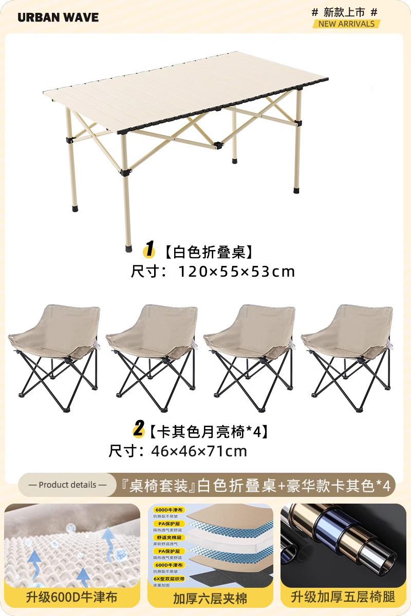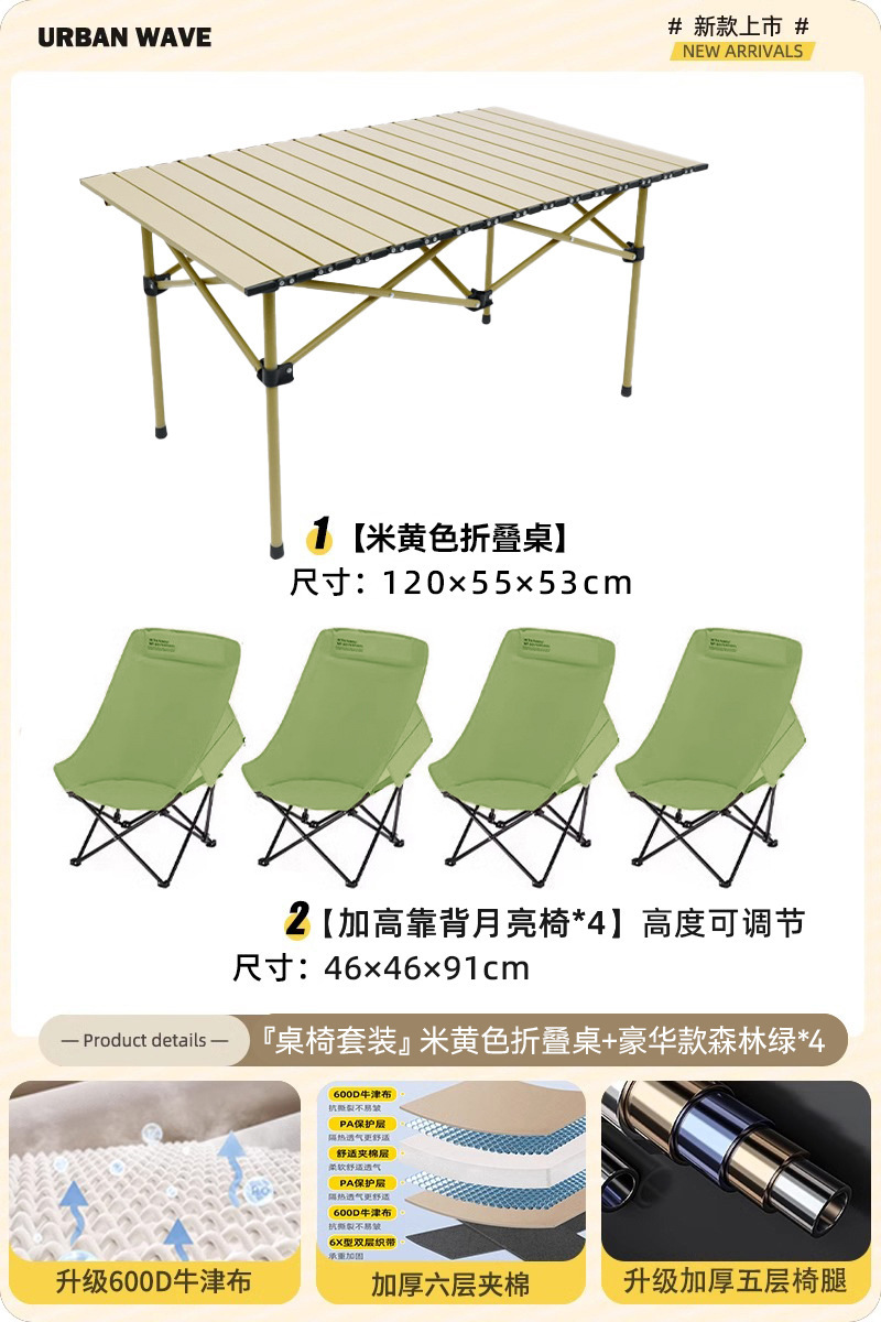 • "테이블과 의자 세트" 업그레이드된 3단 조절 가능✅라이트카키*4+120cm 접이식 테이블