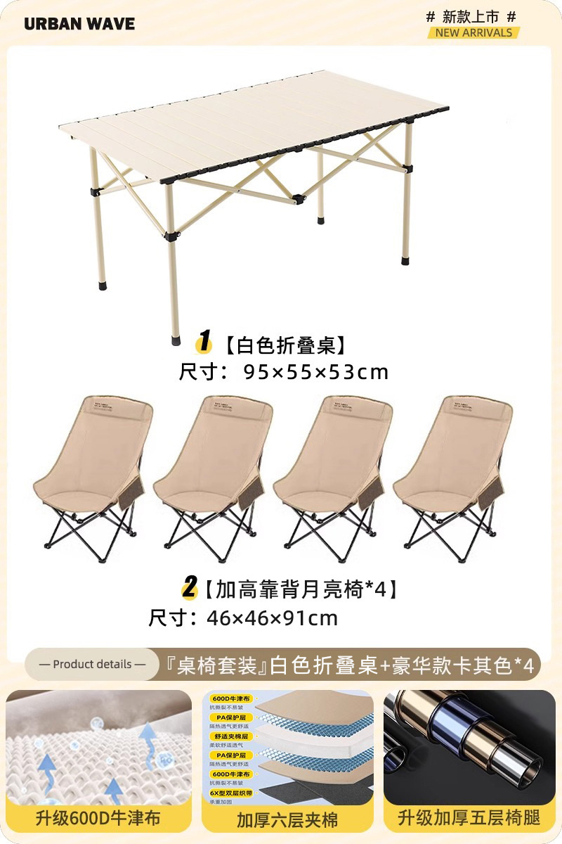 • "테이블과 의자 세트" 라이트 럭셔리 라이트카키*4+95cm 접이식 테이블