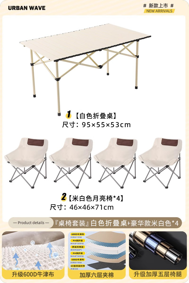 • "테이블과 의자 세트" 라이트 럭셔리 바닐라 화이트*4+95cm 접이식 테이블