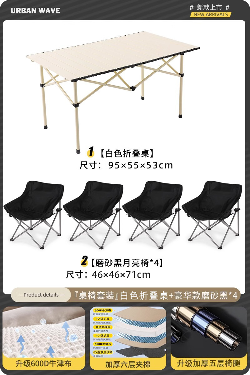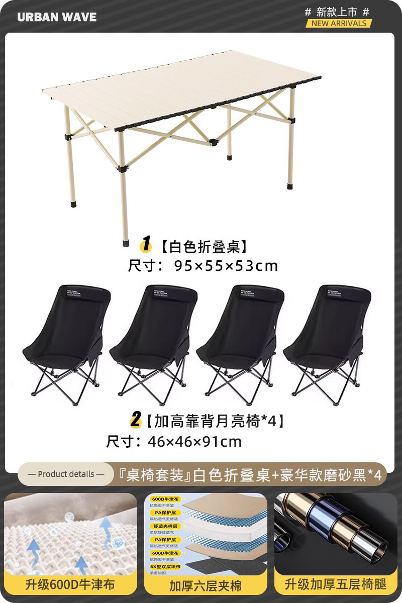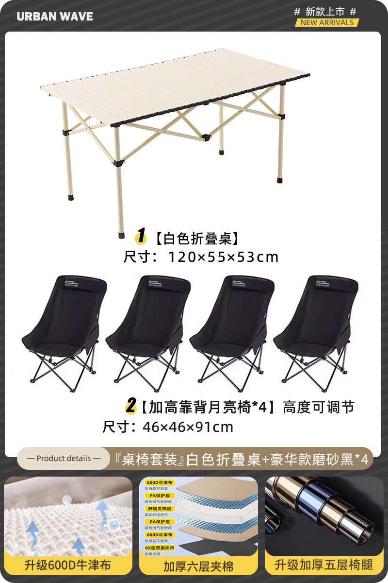 • "테이블과 의자 세트" 업그레이드된 3단 조절 가능 ✅ 옵시디언 블랙*4+120cm 접이식 테이블