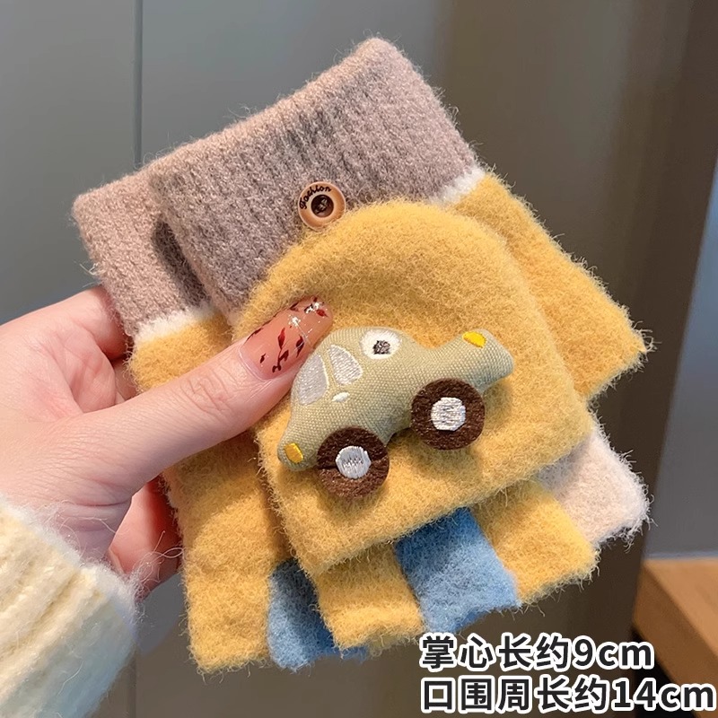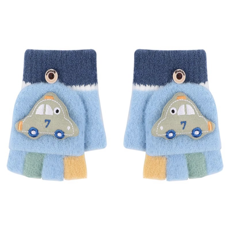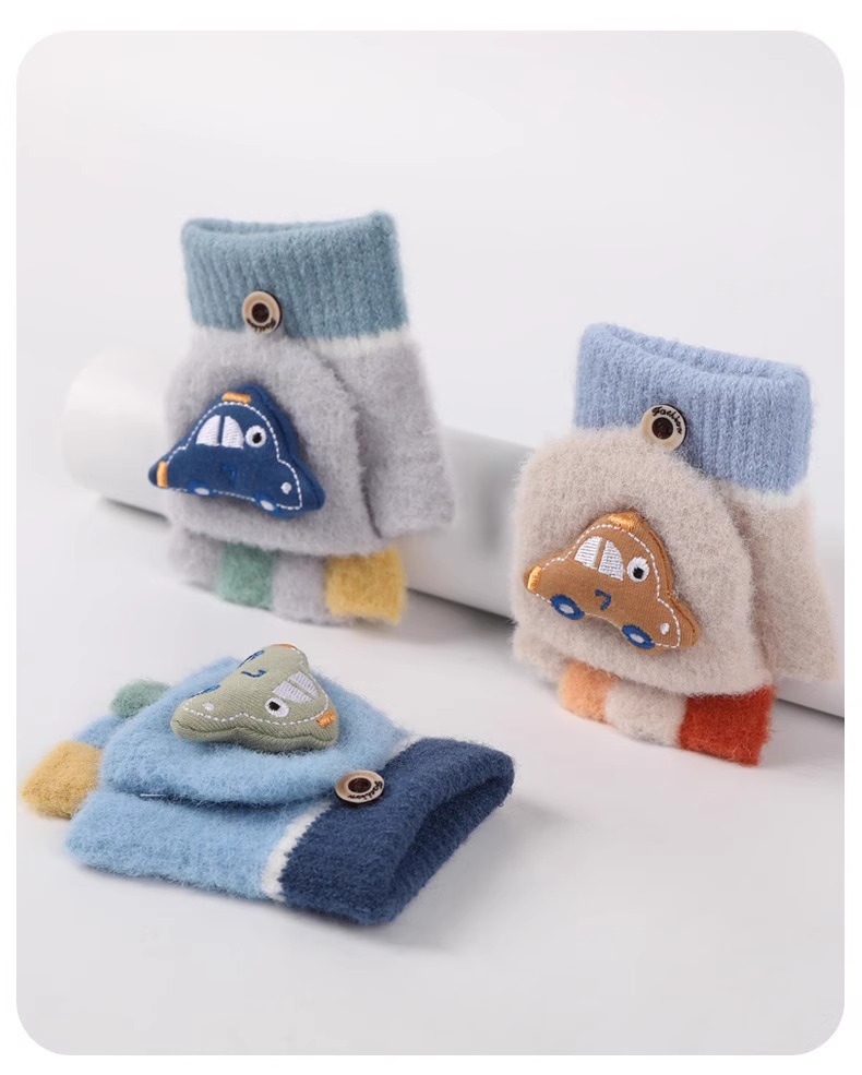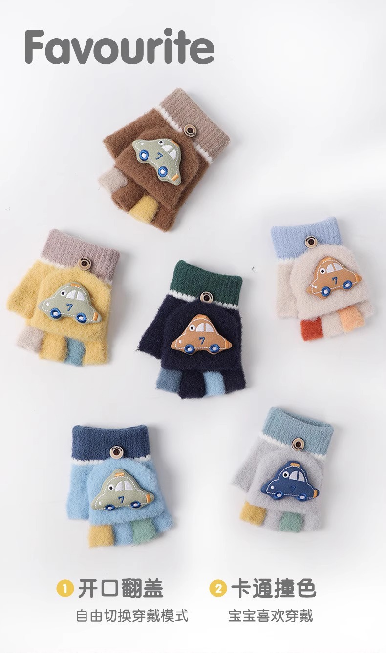 가을과 겨울 어린이 장갑 귀여운 니트 따뜻한 만화 자동차 아기 장갑 멀티 컬러 손가락