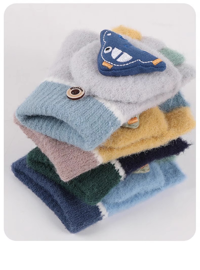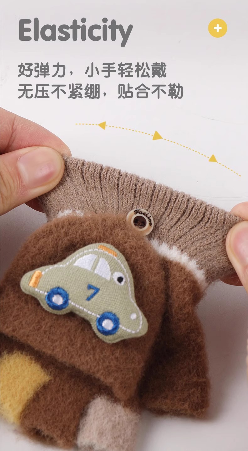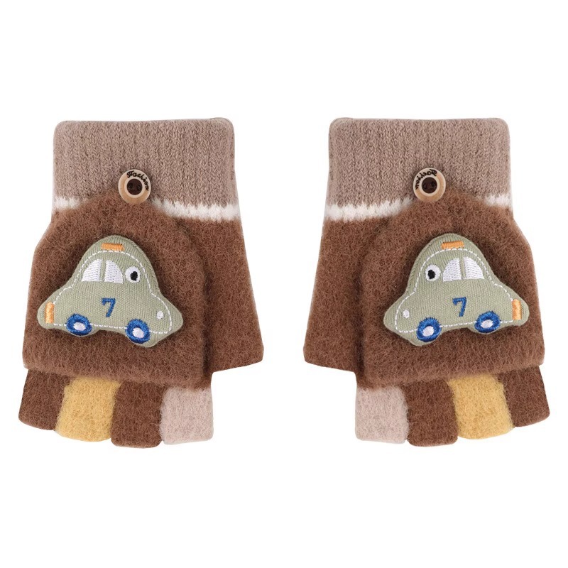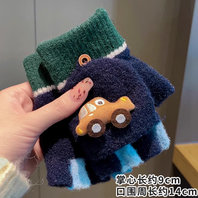 가을과 겨울 어린이 장갑 귀여운 니트 따뜻한 만화 자동차 아기 장갑 멀티 컬러 손가락
