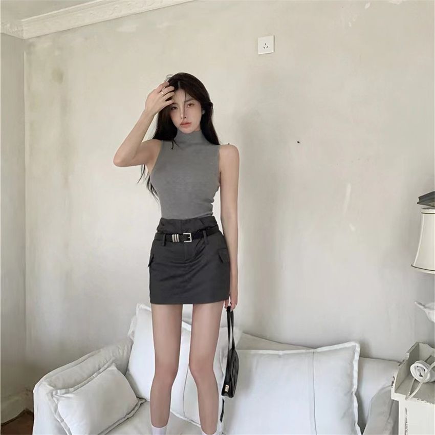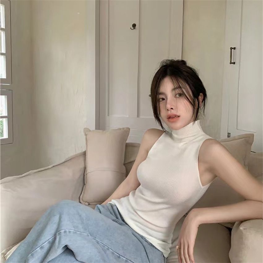 아메리칸 스타일 순수한 욕망 핫 걸스 하이 칼라 민소매 스웨터 조끼 여성의 가을 슬림 핏 슬리밍 내부 착용 외모 입기 베이스 셔츠스토어 가기