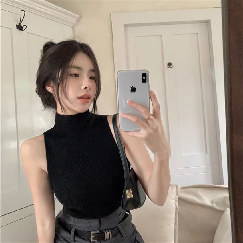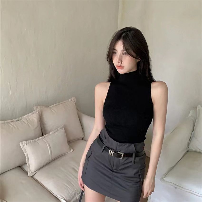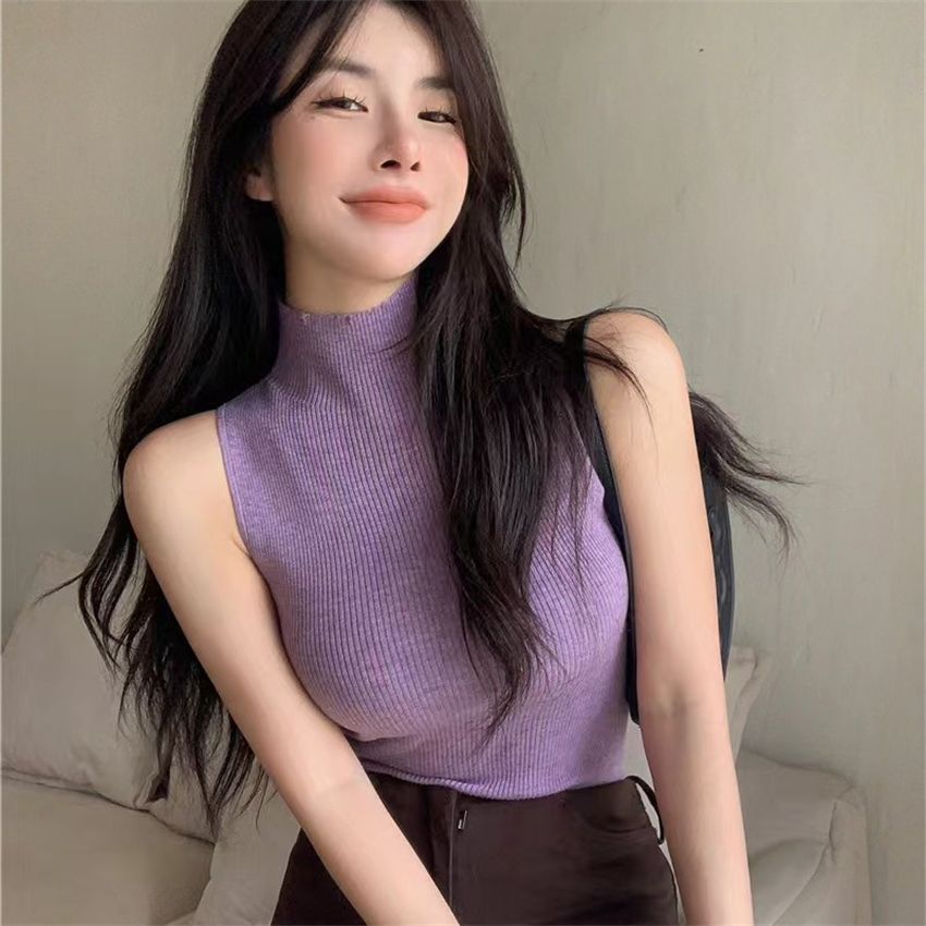 아메리칸 스타일 순수한 욕망 핫 걸스 하이 칼라 민소매 스웨터 조끼 여성의 가을 슬림 핏 슬리밍 내부 착용 외모 입기 베이스 셔츠