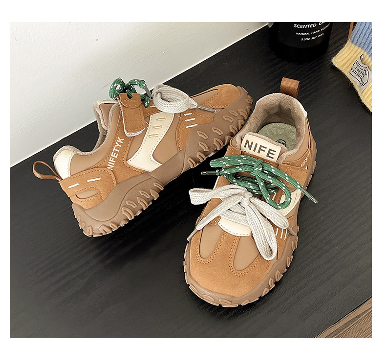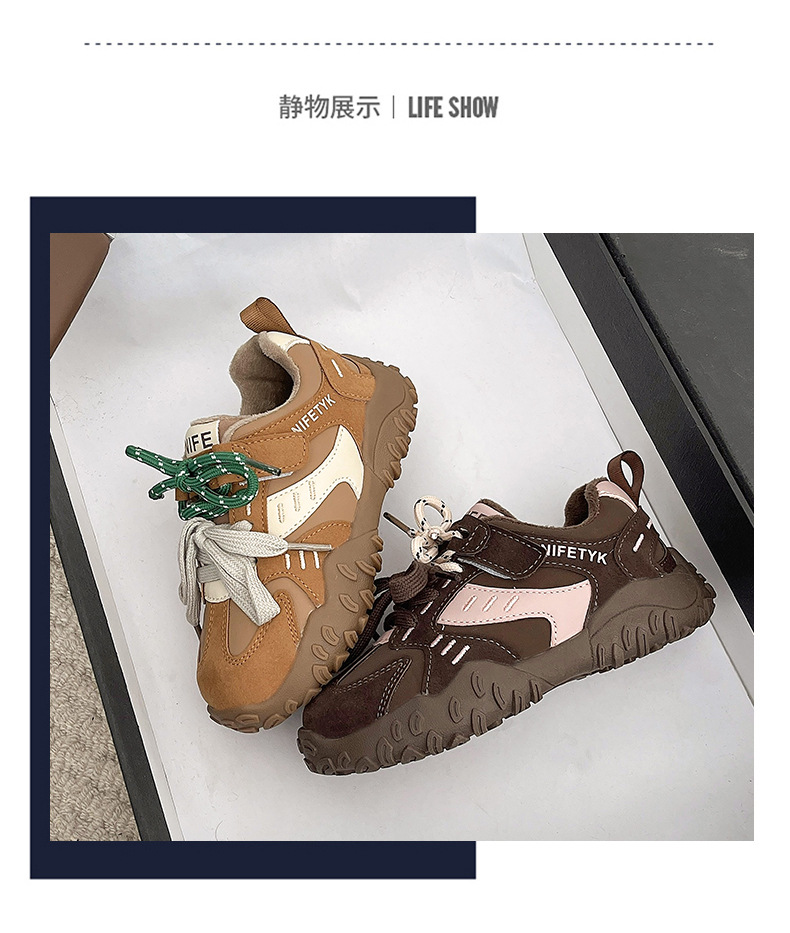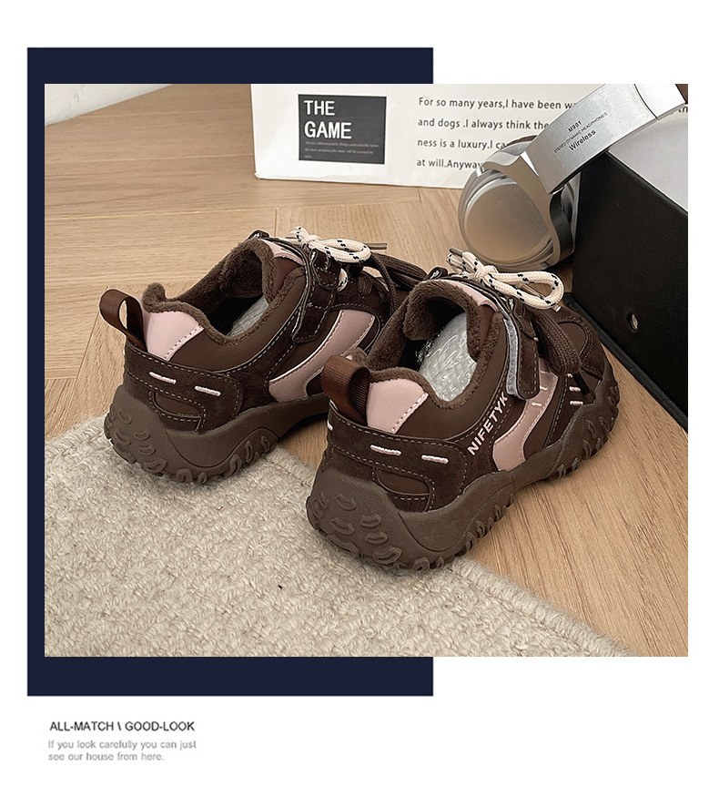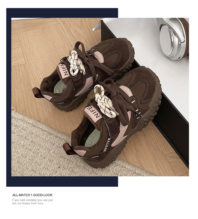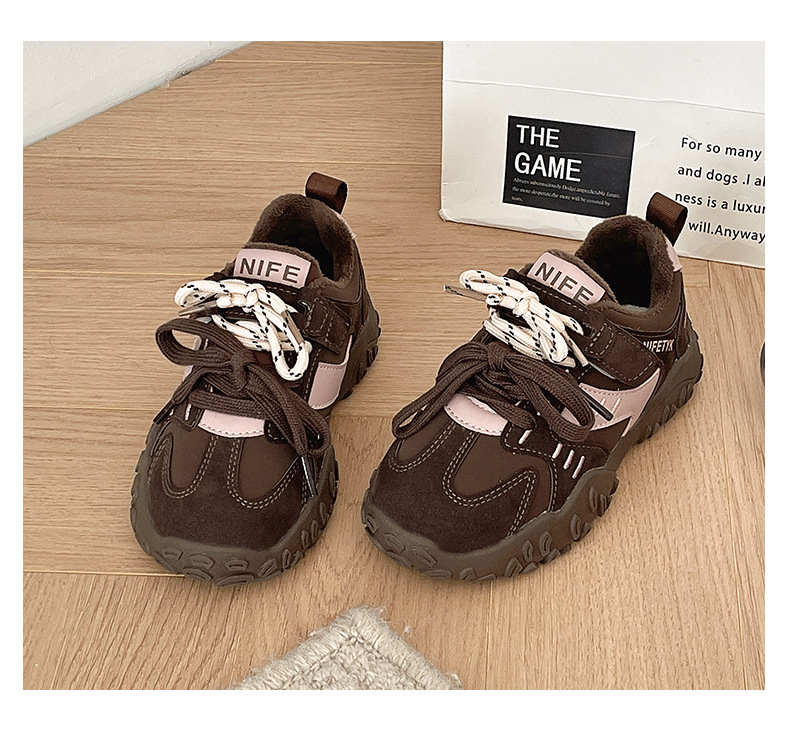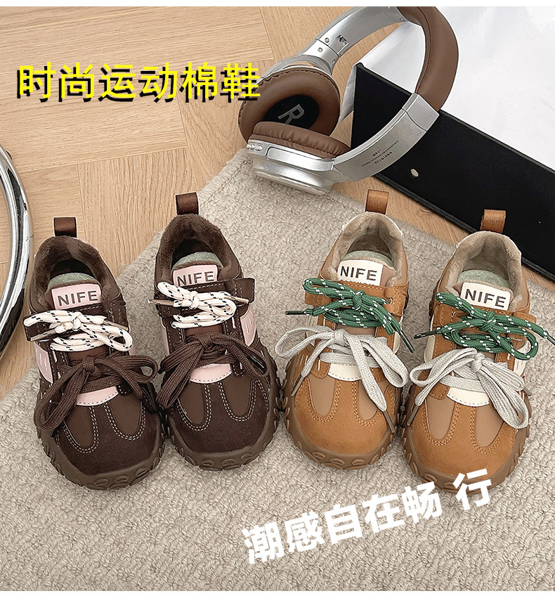 소녀 기모 운동화 2024 새로운 가을 및 겨울 어린이 면화 캐주얼 포레스트 검프 신발 중 및 대형 어린이 미끄럼 방지 보드 신발스토어 가기