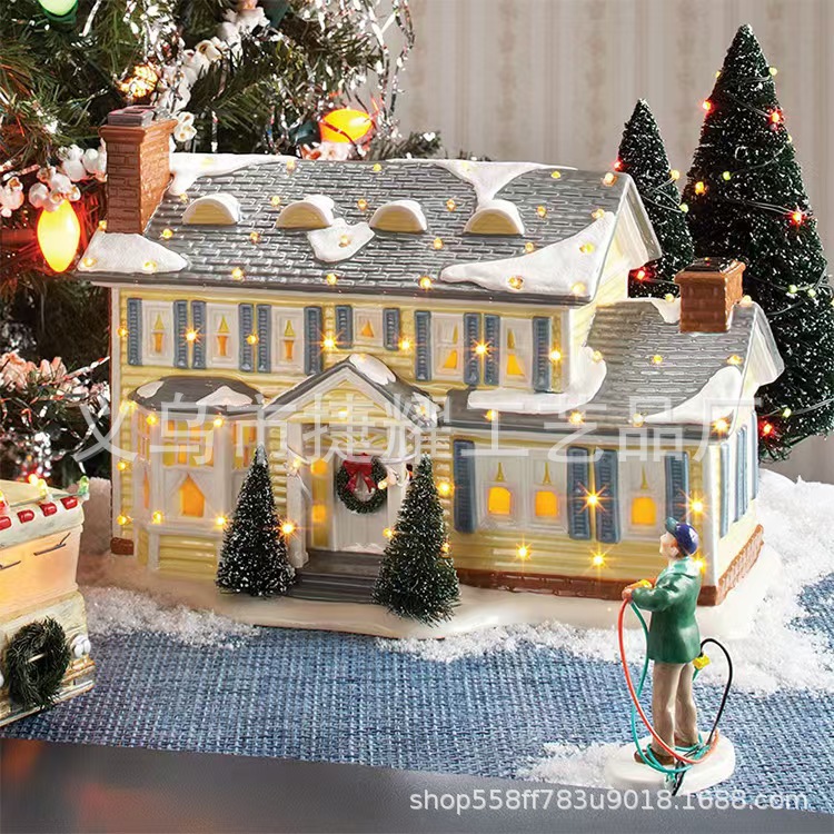 국경 크리스마스 집 자동차 인형 공예품 농촌 휴일 거리 장식 선물 수지 장식품