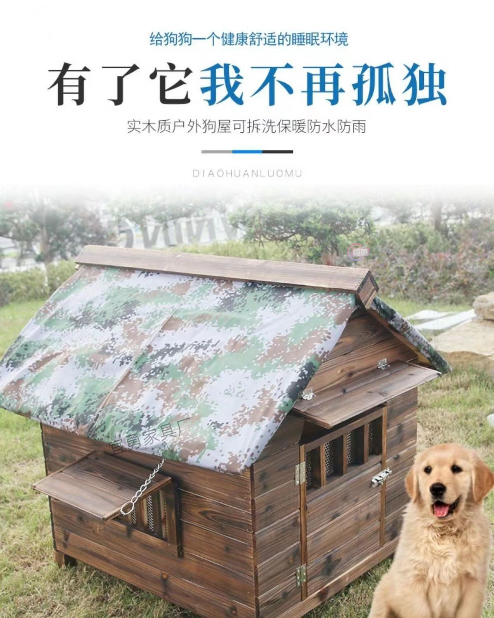 고급 개 집 곰팡이 방비 방수 야외 단단한 나무 탄산 나무 사계절 유니버설 개 집 애완 동물 고양이 개 집스토어 가기