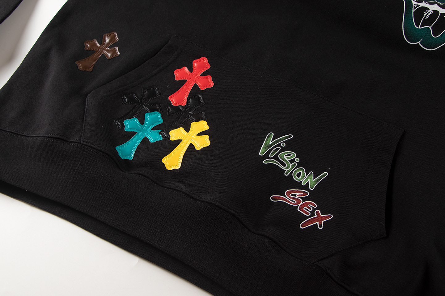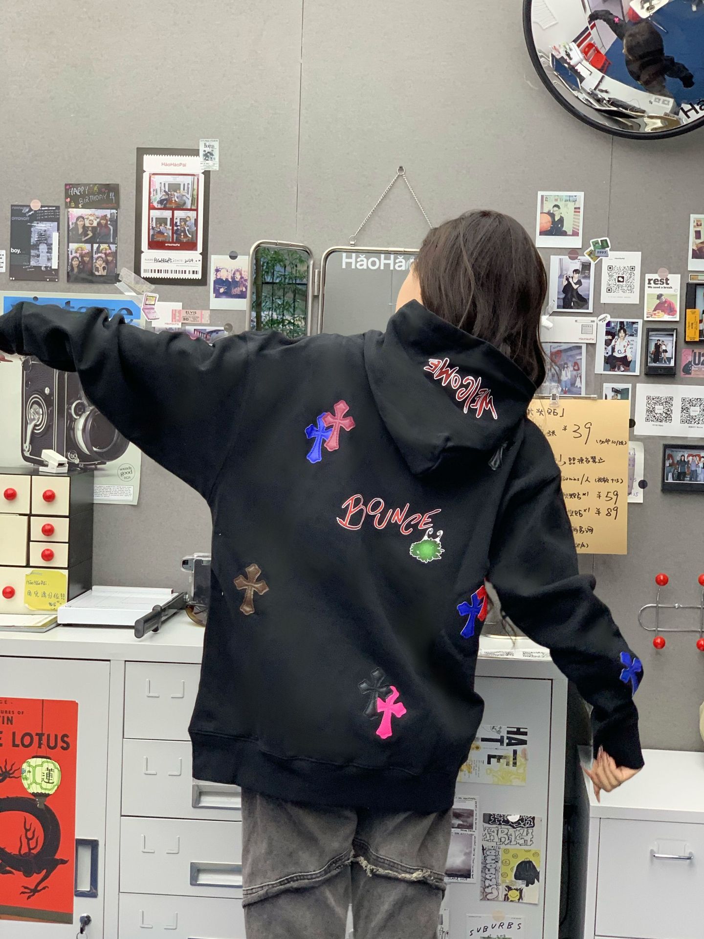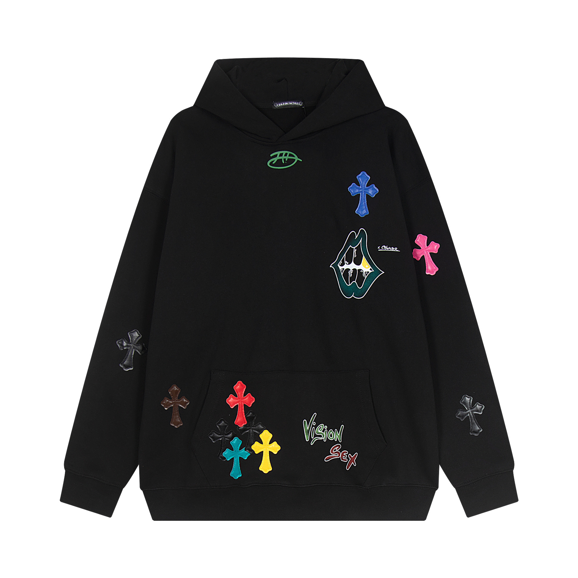 24SS 새로운 크롬 하트 다채로운 크로스 필 산스크리트어 손으로 그린 낙서 후드 커플스토어 가기