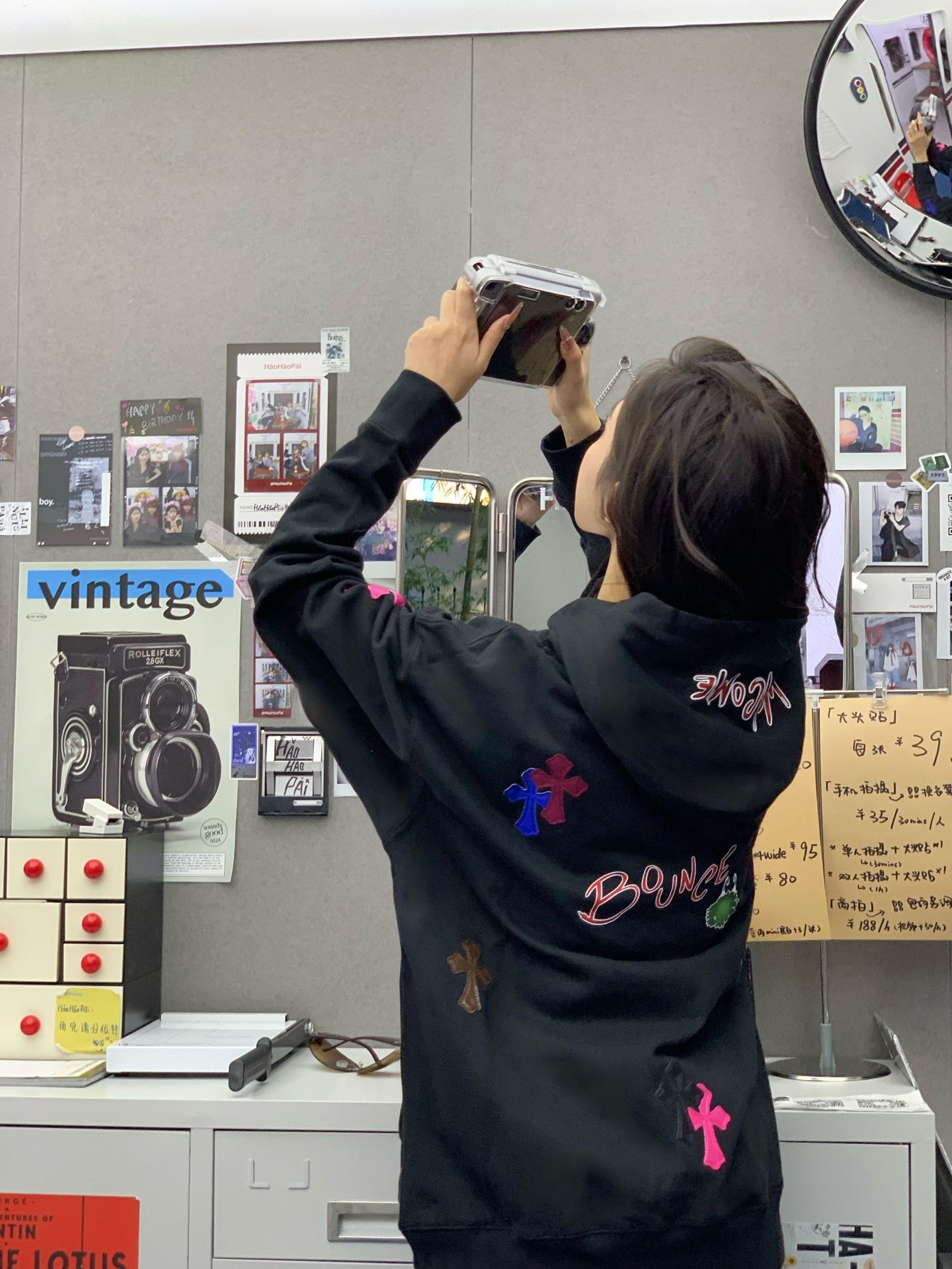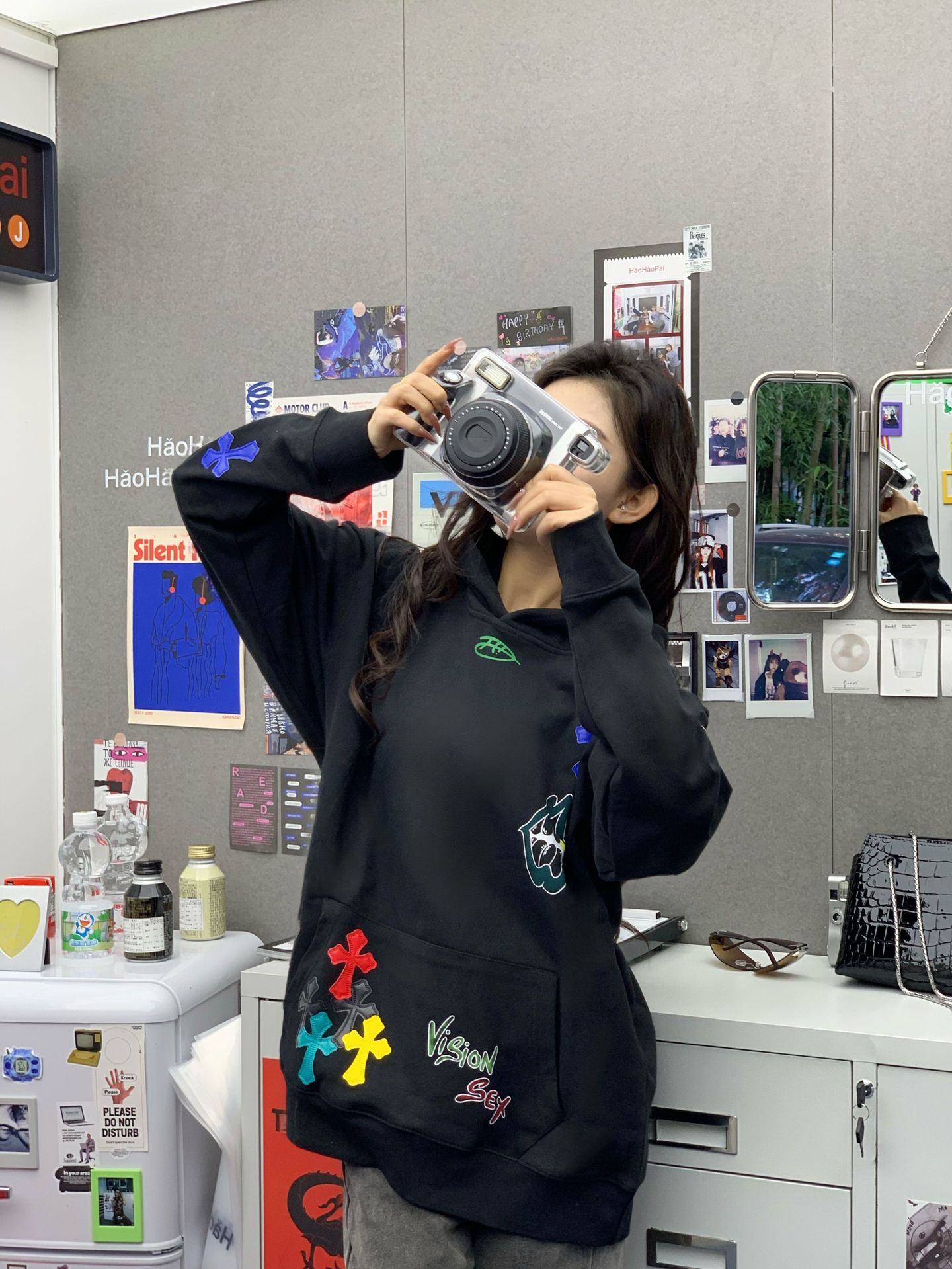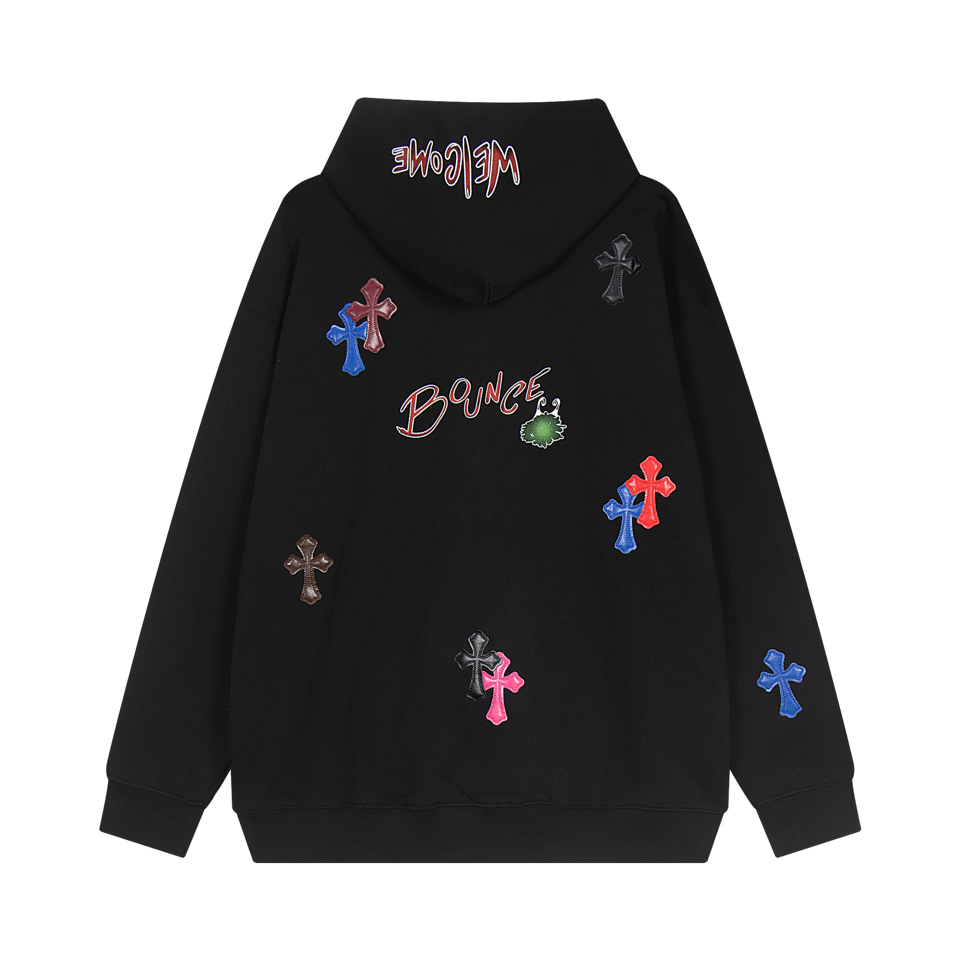 24SS 새로운 크롬 하트 다채로운 크로스 필 산스크리트어 손으로 그린 낙서 후드 커플스토어 가기