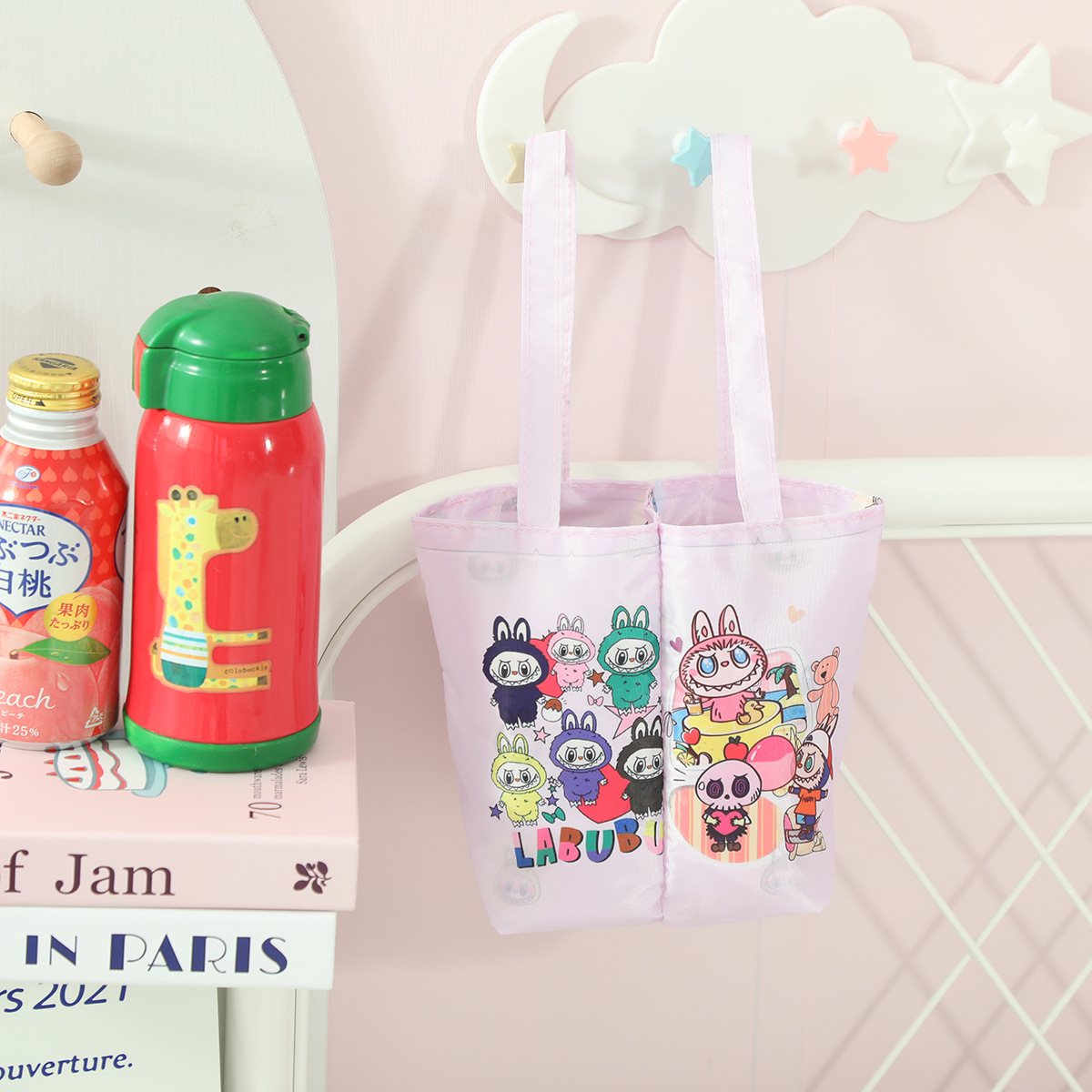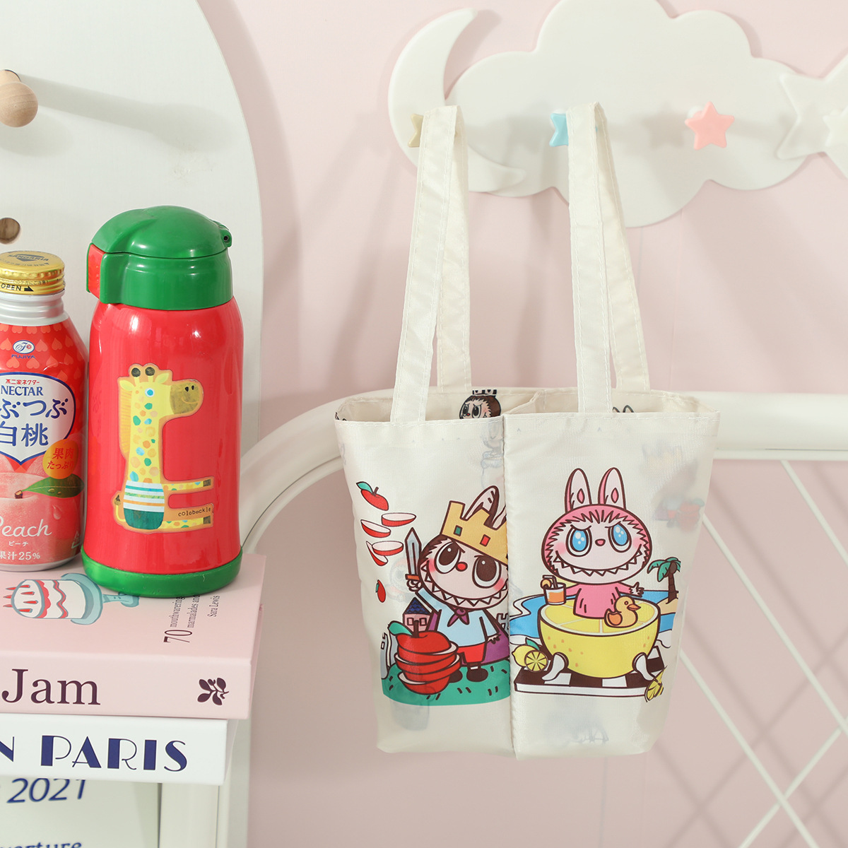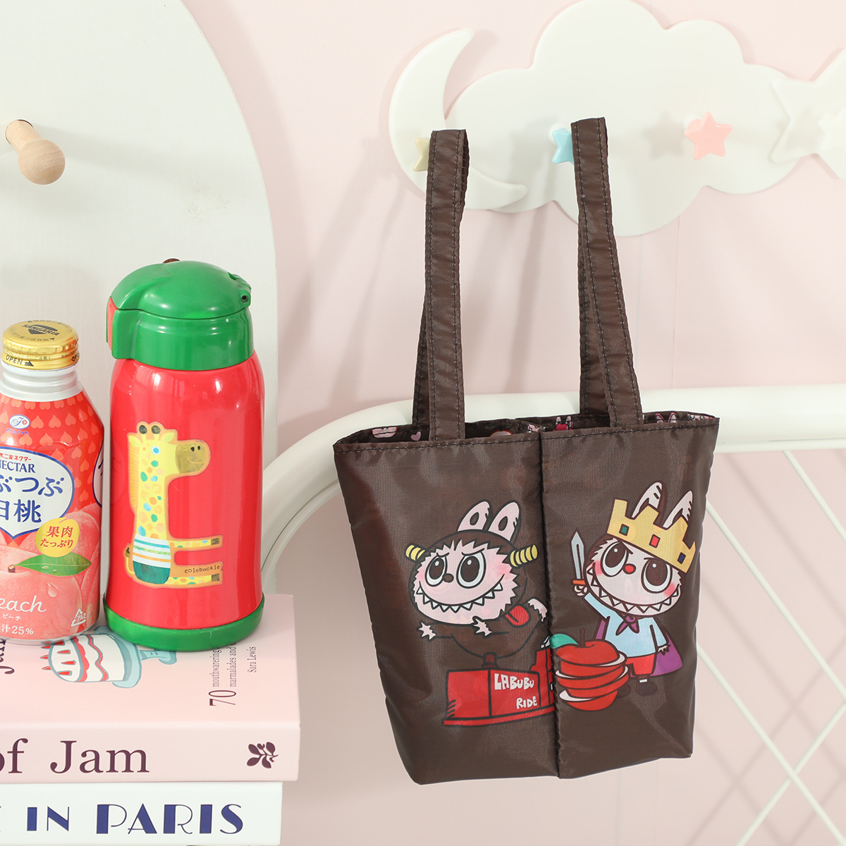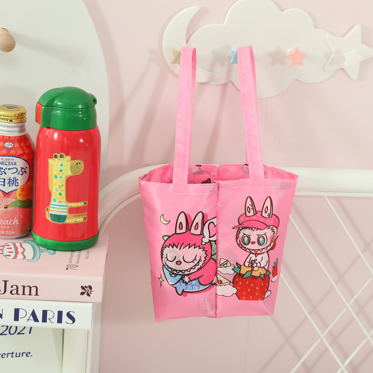 상어 고양이 만화 귀여운 이중컵 일체형 휴대용 밀크티 가방 접이식 보관 음료 가방