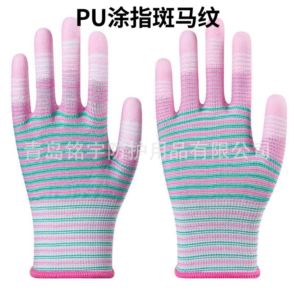얼룩말 패턴 PU 손가락 코팅 장갑 손가락 코팅 노동 보호 작업 장갑 미끄럼 방지 작업 보호 남성과 여성 도매