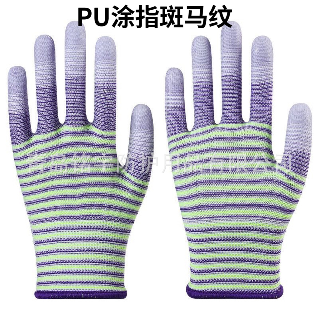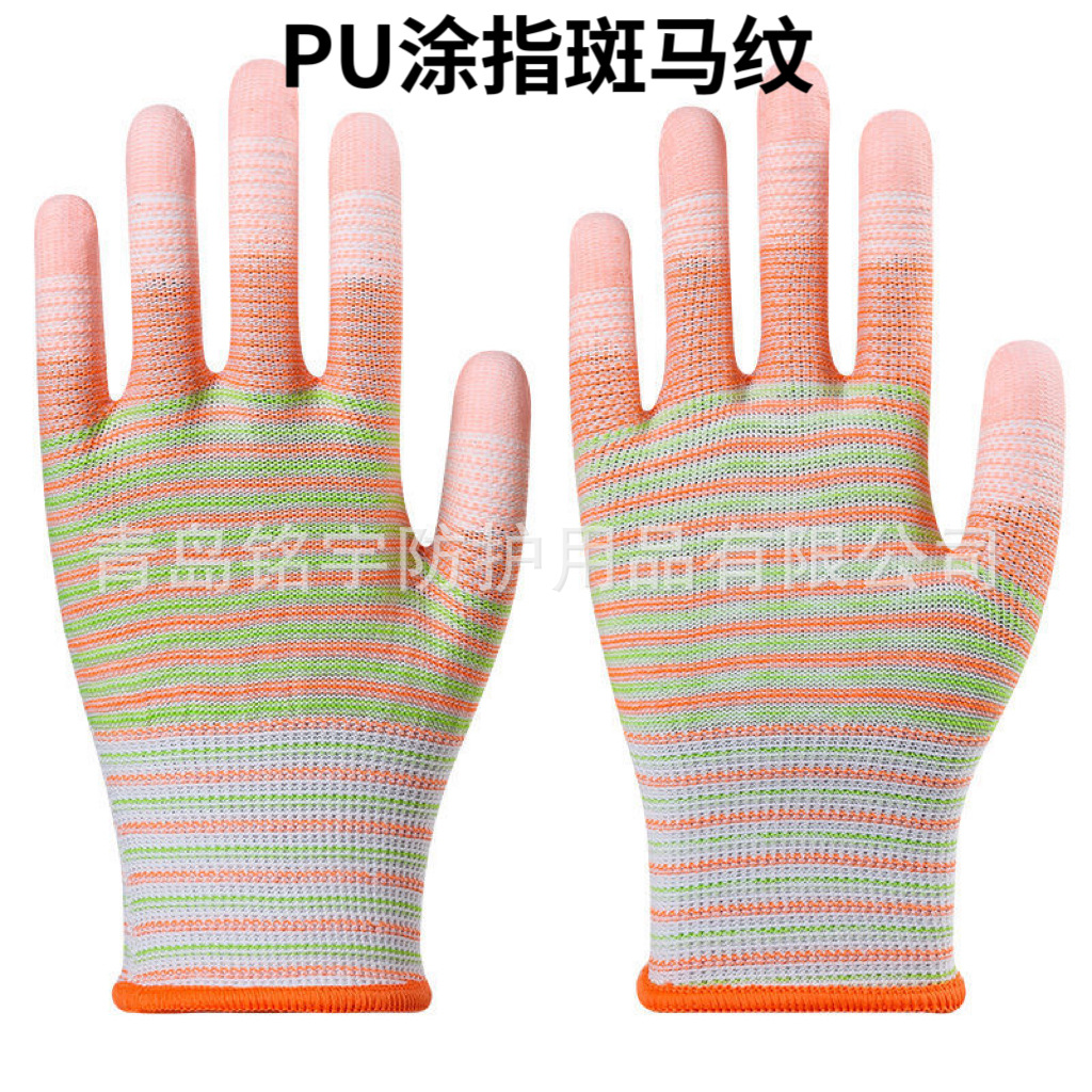 얼룩말 패턴 PU 손가락 코팅 장갑 손가락 코팅 노동 보호 작업 장갑 미끄럼 방지 작업 보호 남성과 여성 도매스토어 가기