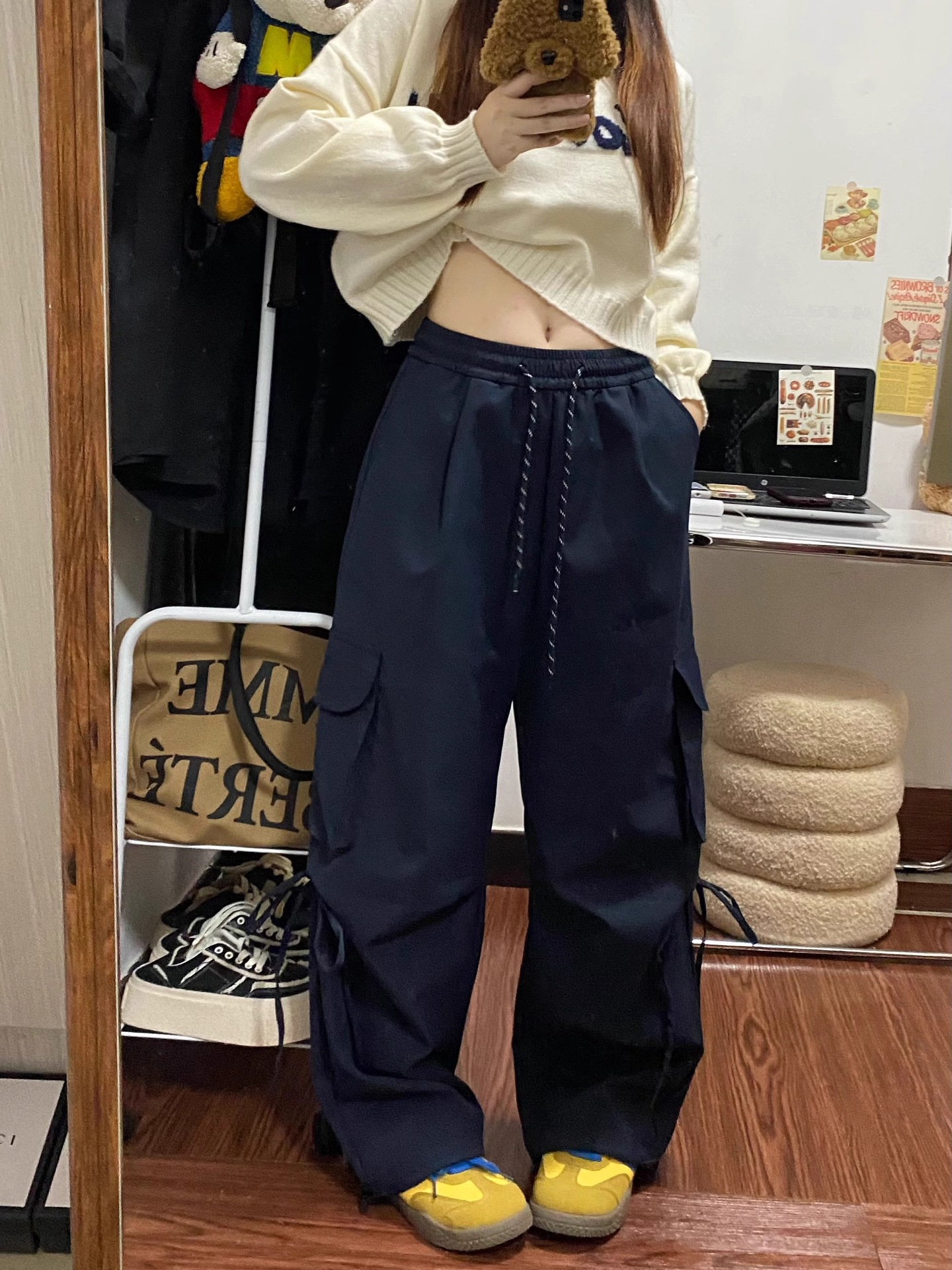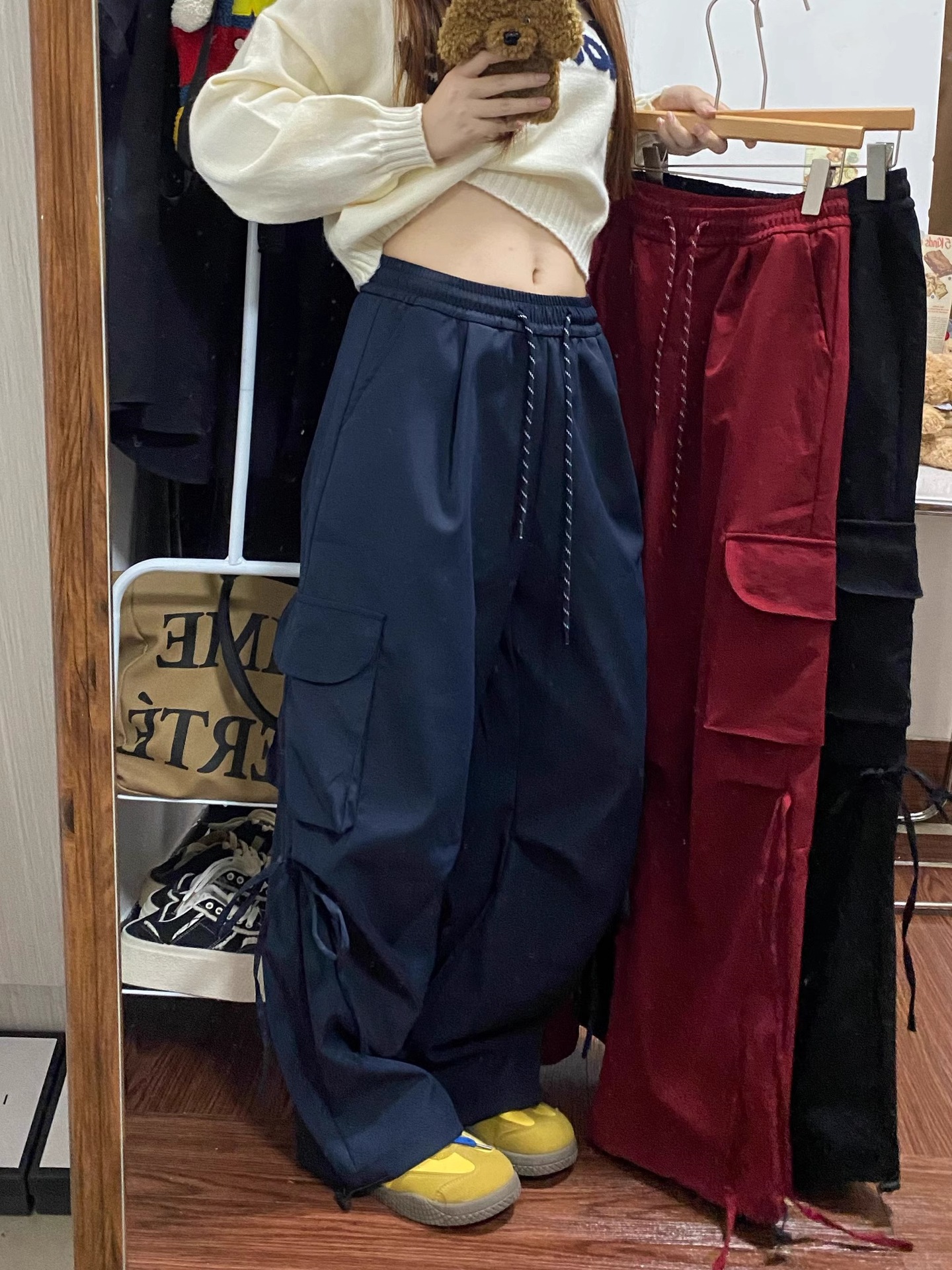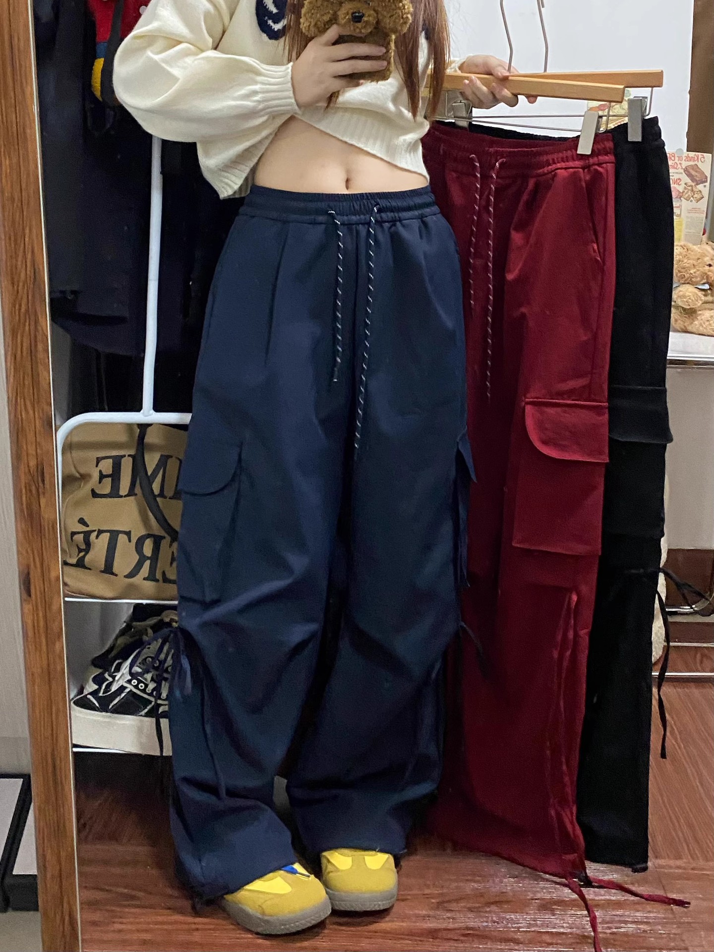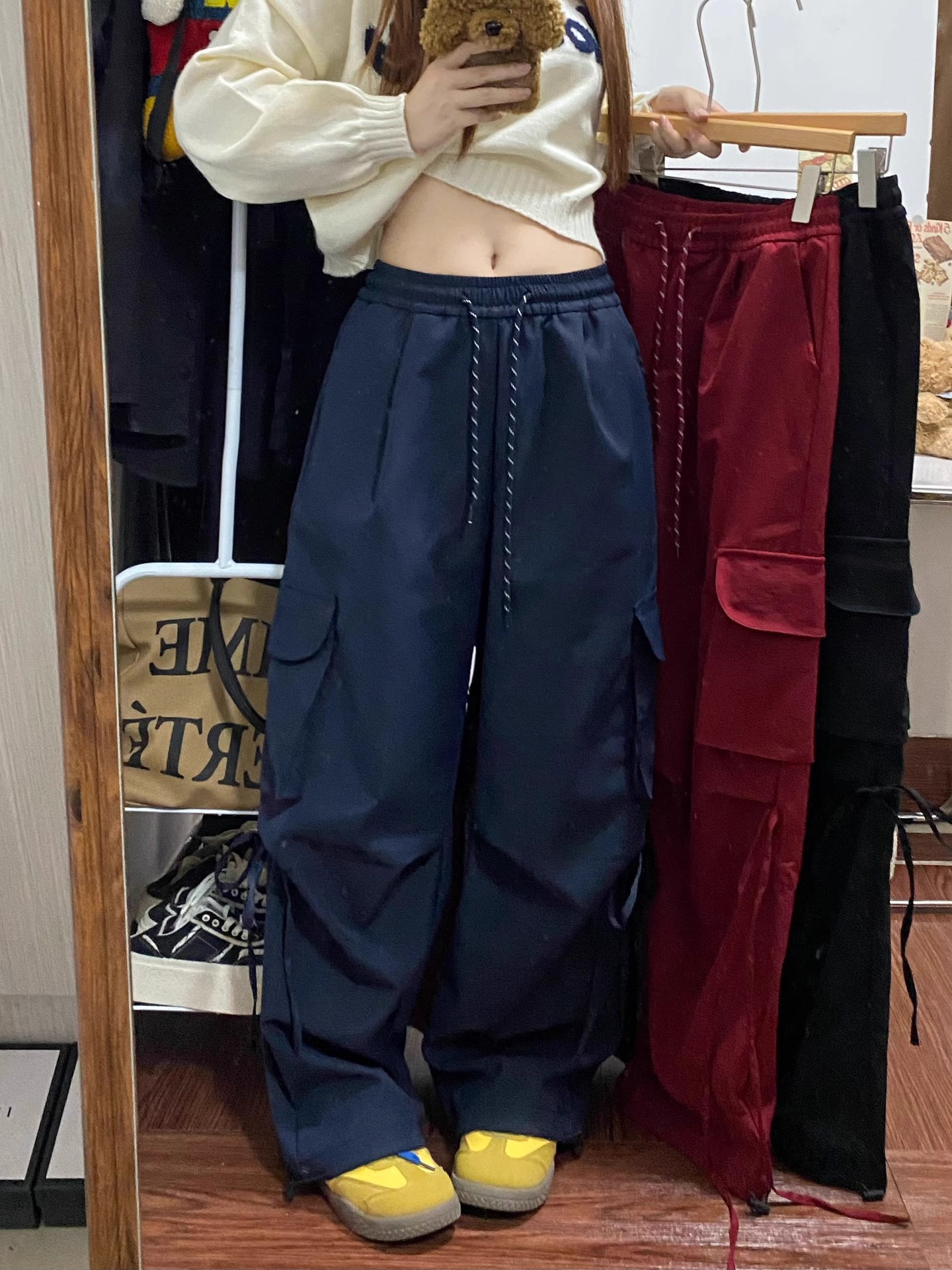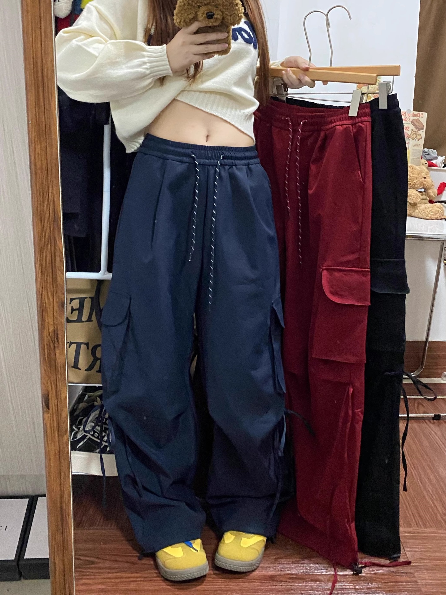 [원래 품질] 미국 한국식 등반 캐주얼 바지 여성 가을 새 느슨한 직선 방풍 도구 바지스토어 가기