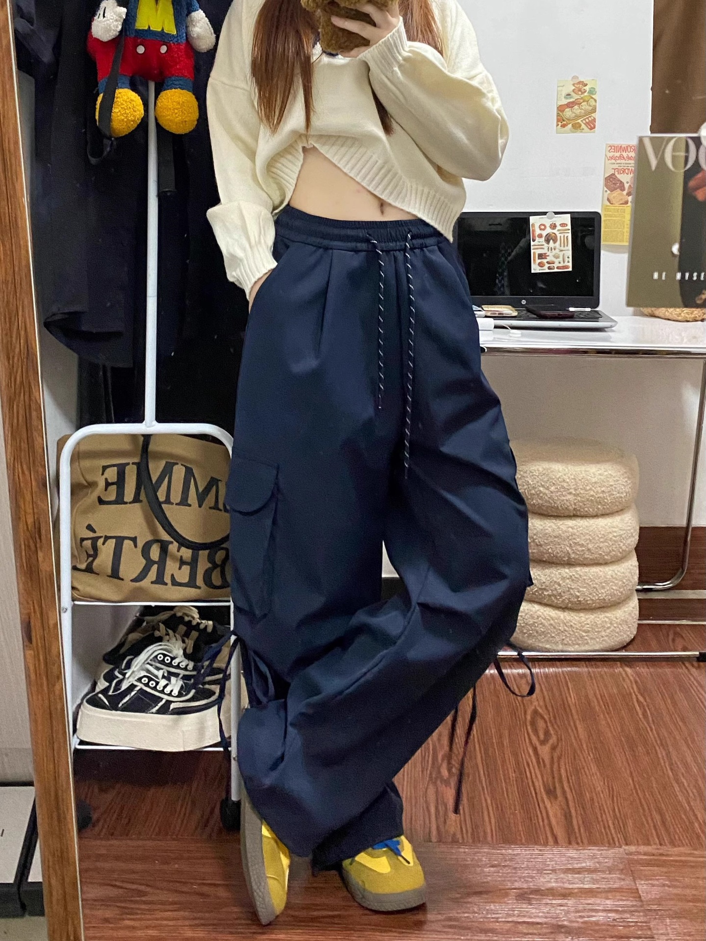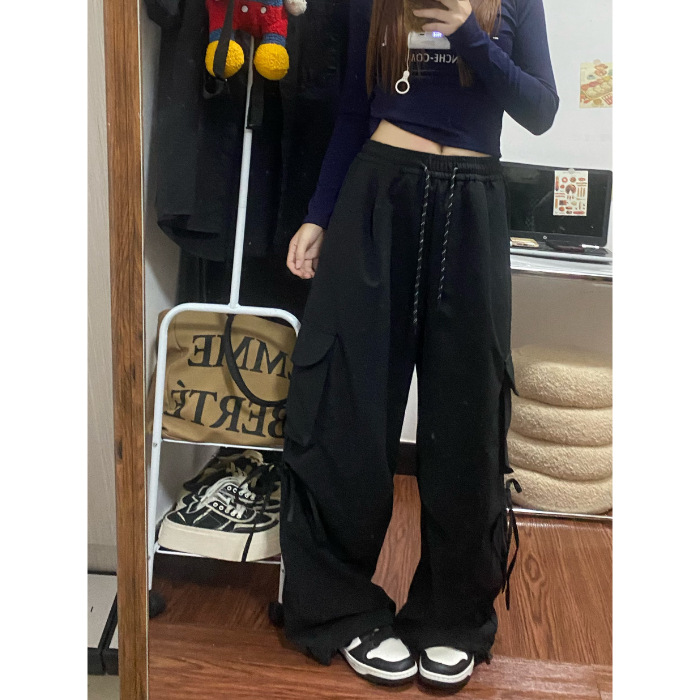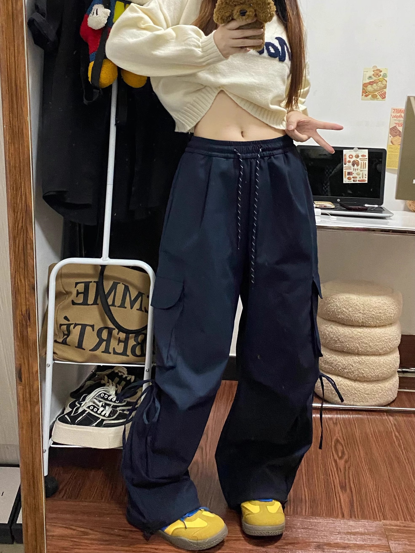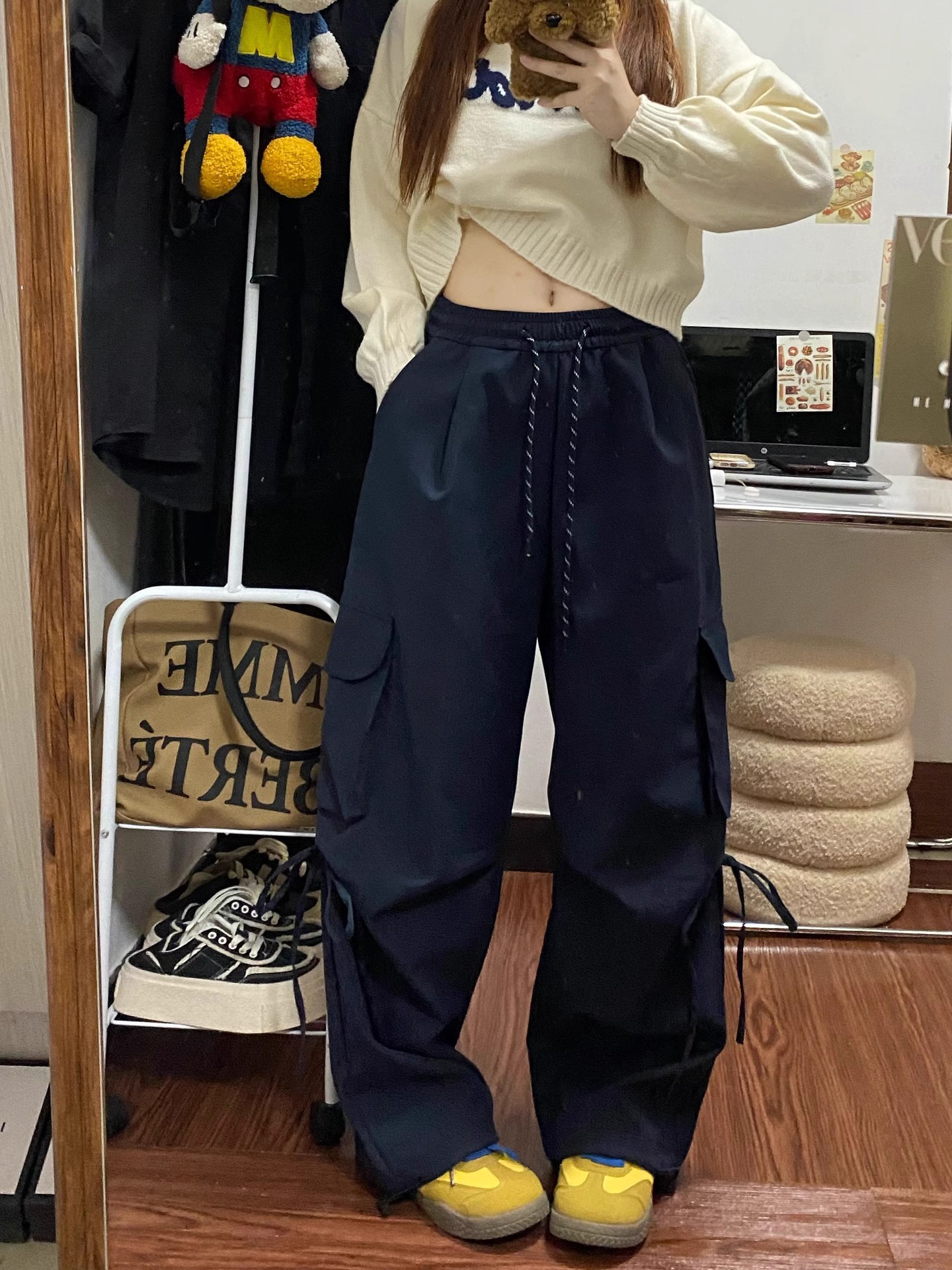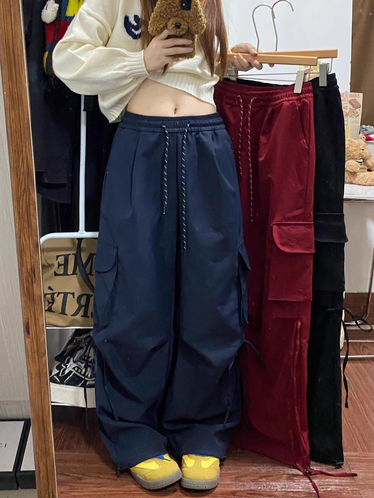 [원래 품질] 미국 한국식 등반 캐주얼 바지 여성 가을 새 느슨한 직선 방풍 도구 바지스토어 가기
