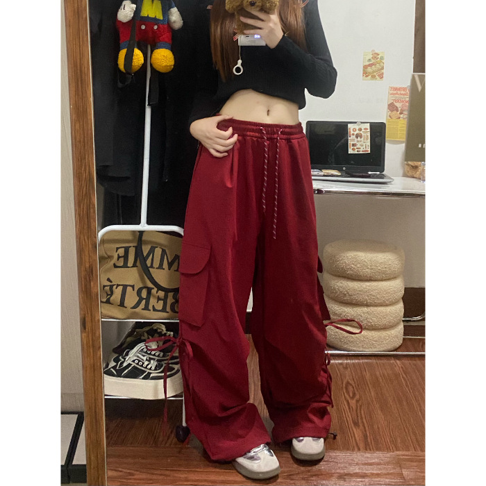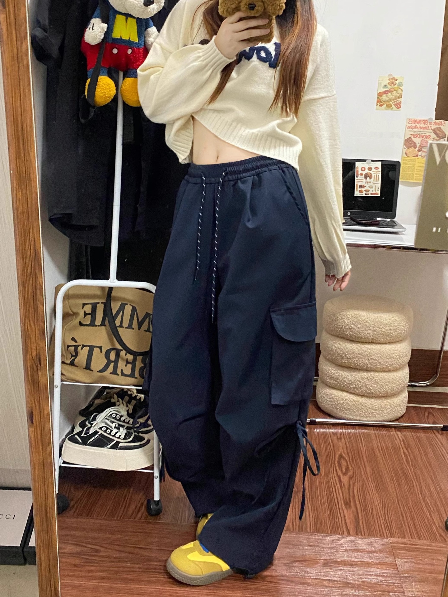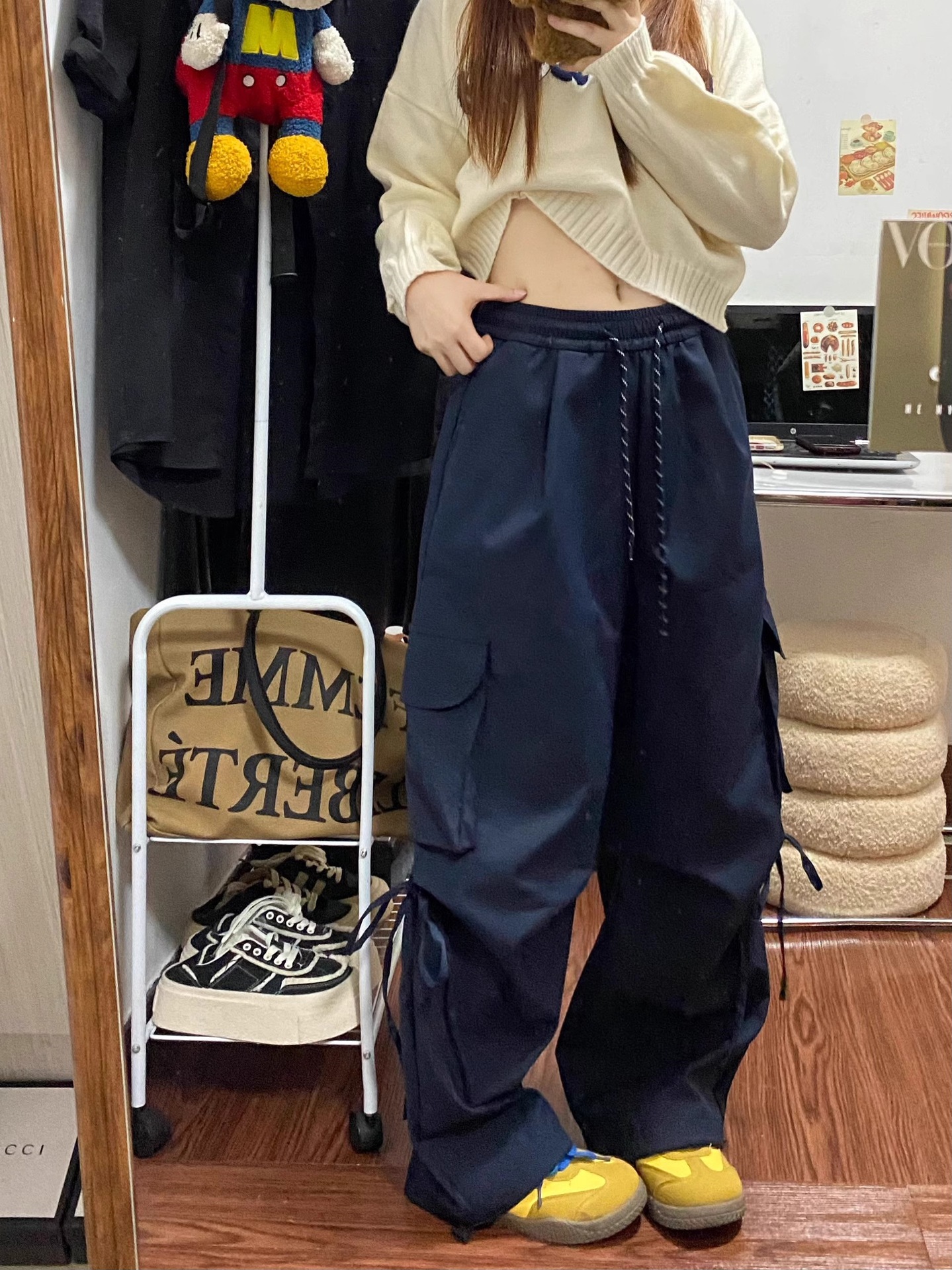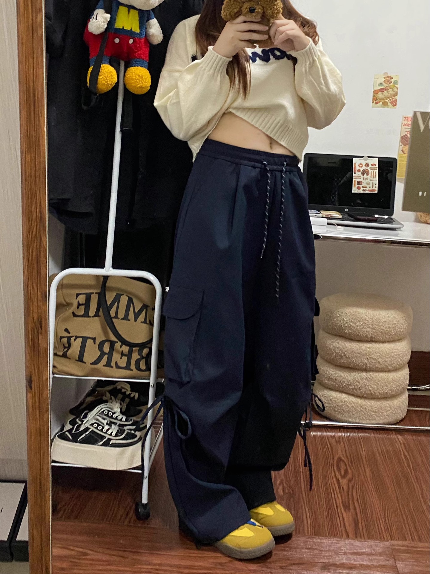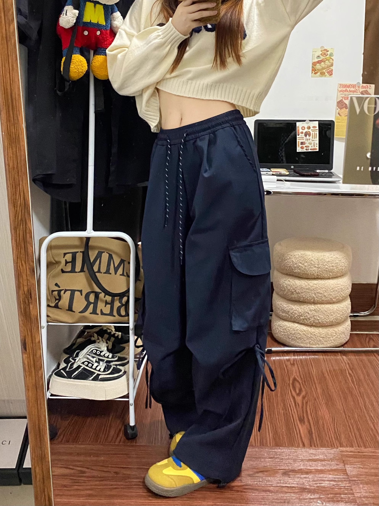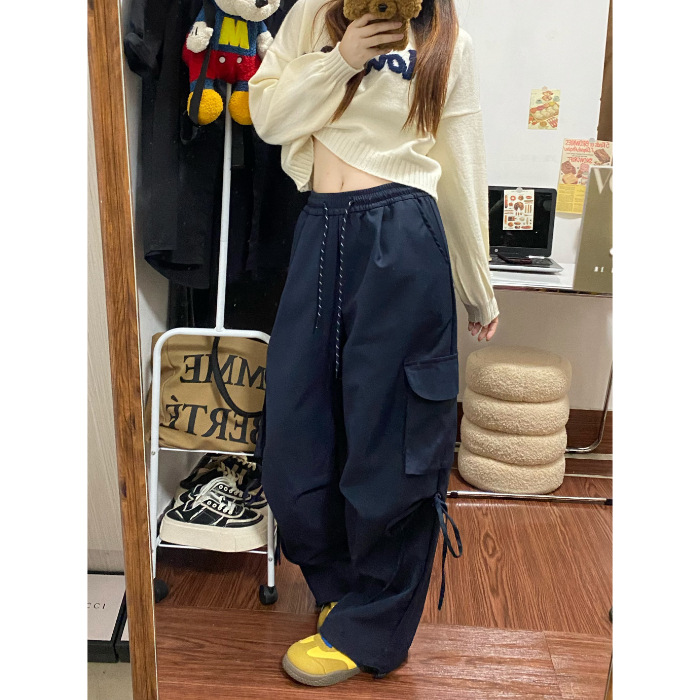 [원래 품질] 미국 한국식 등반 캐주얼 바지 여성 가을 새 느슨한 직선 방풍 도구 바지스토어 가기