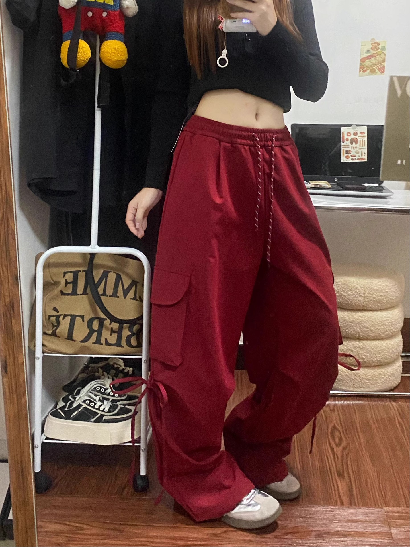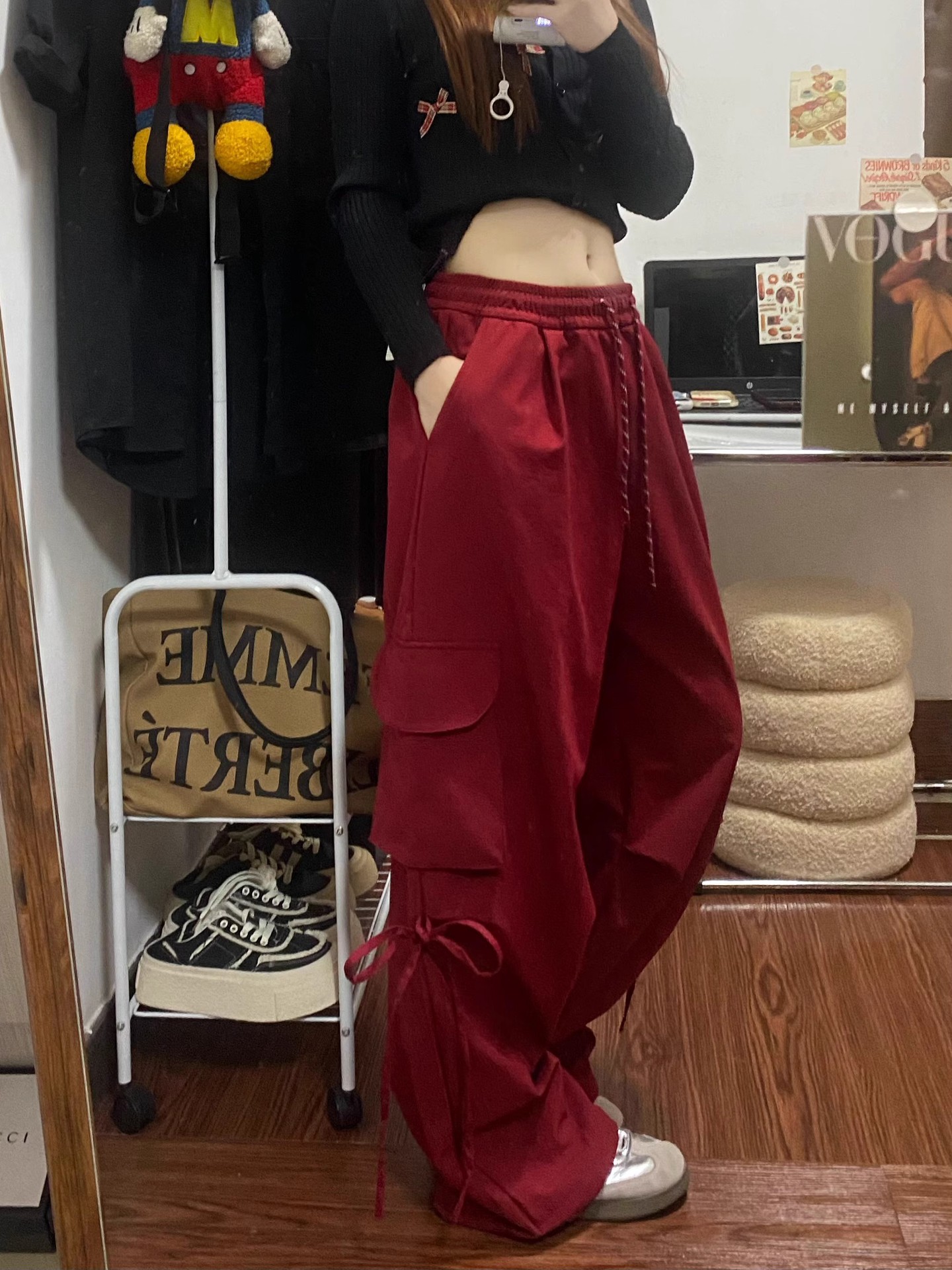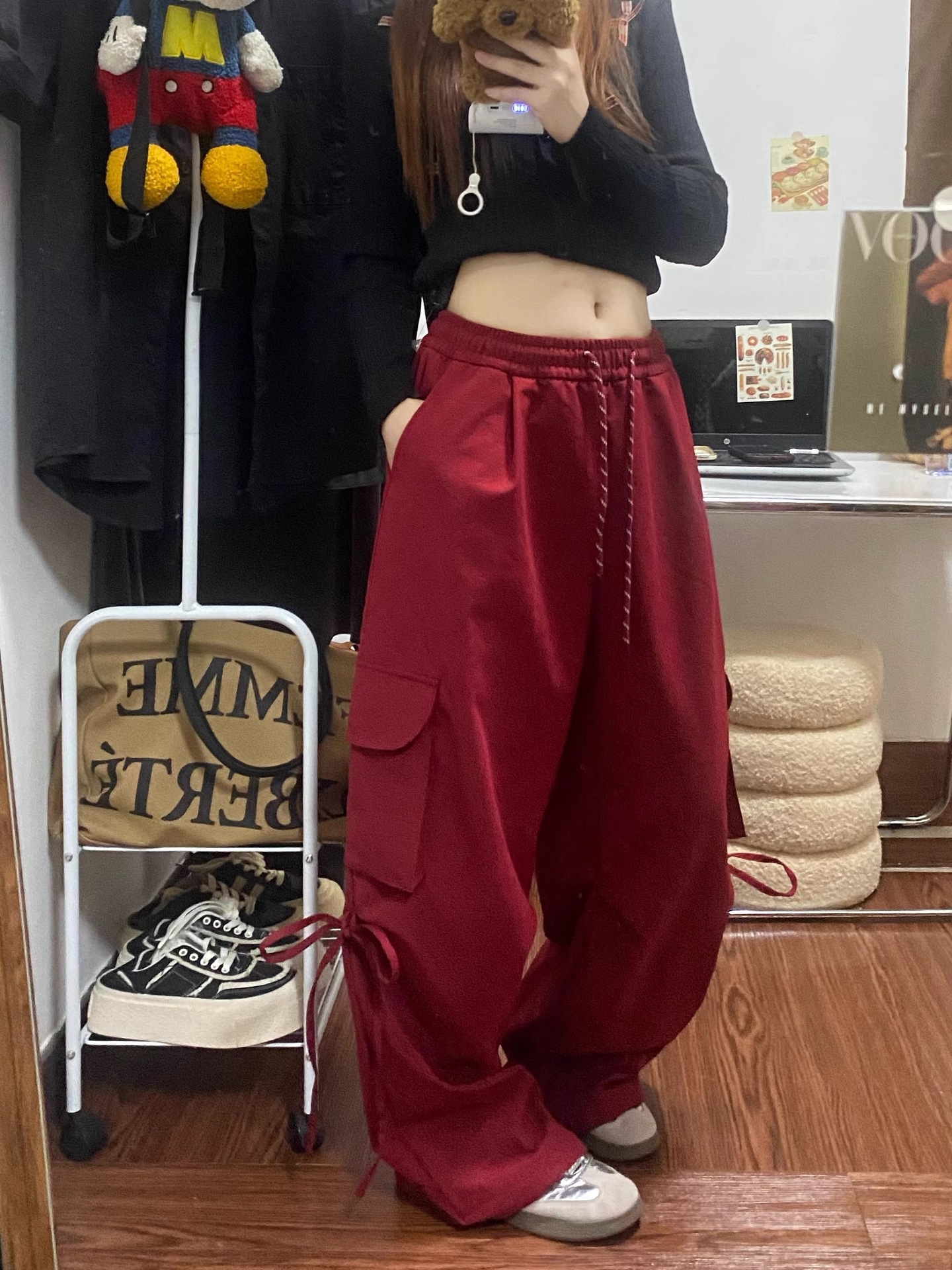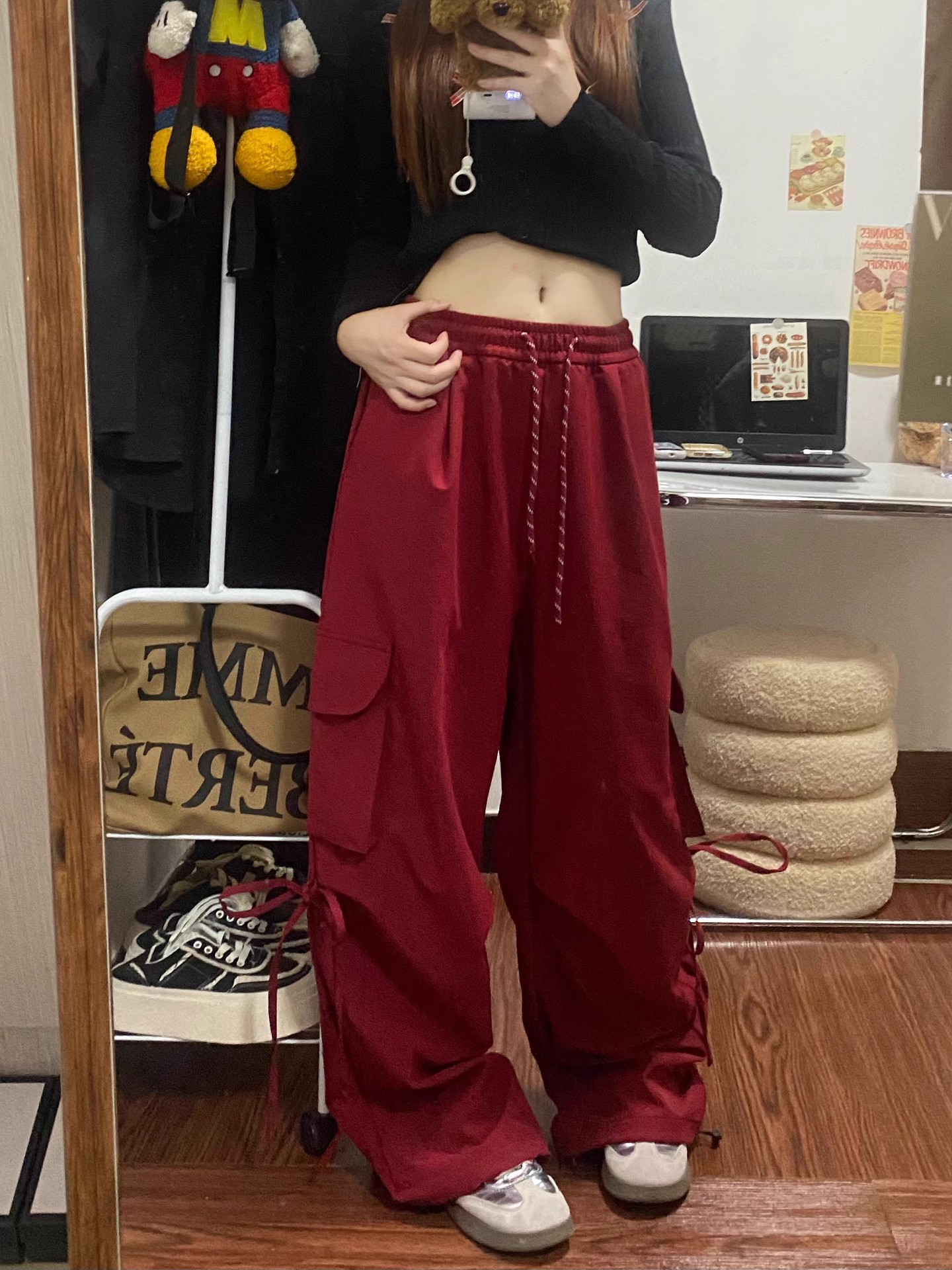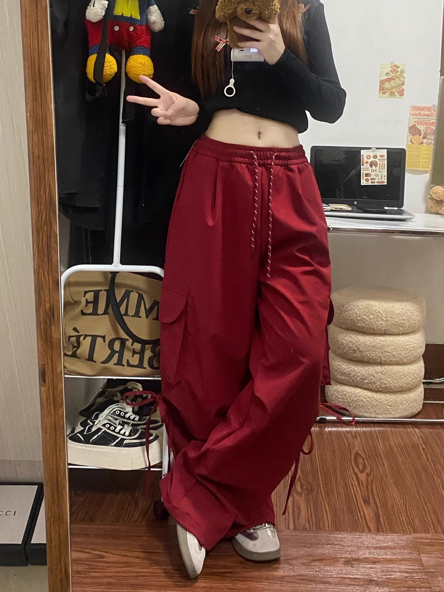 [원래 품질] 미국 한국식 등반 캐주얼 바지 여성 가을 새 느슨한 직선 방풍 도구 바지스토어 가기