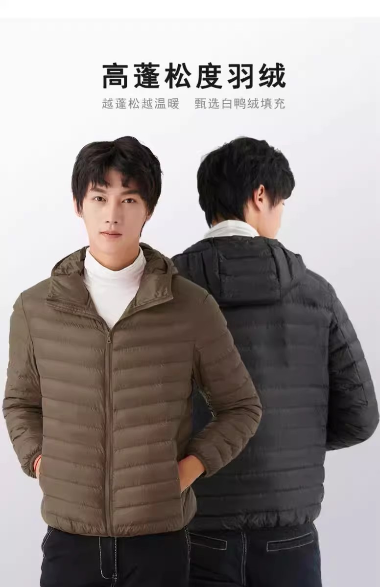 90% 다운 경량 다운 재킷 남성용 후드형 플러스 사이즈 100kg 중장년층 초경량 아빠용스토어 가기