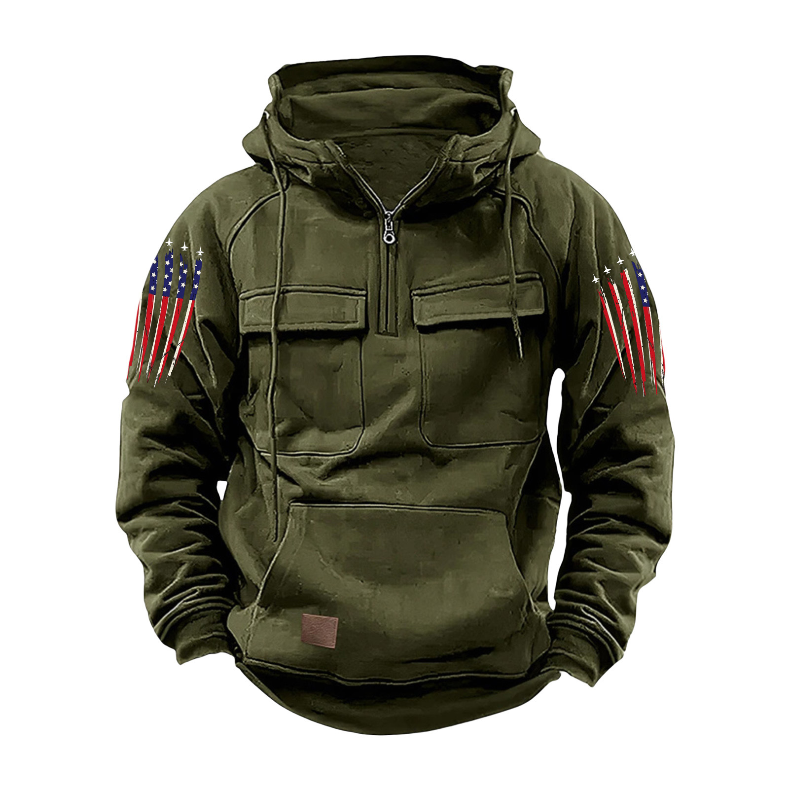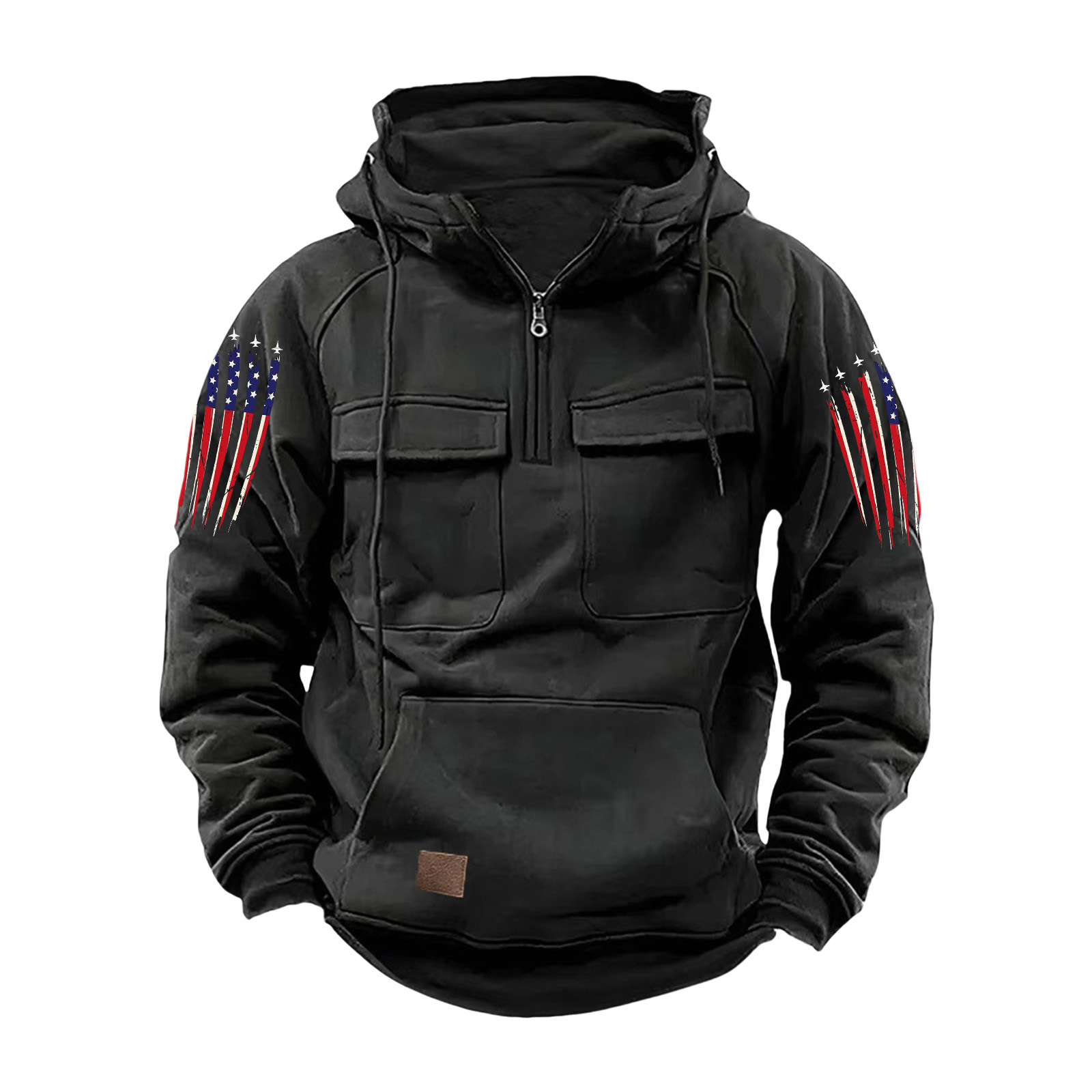 2024 국경 유럽 크기 가을/겨울 남성 후드 스웨터 유럽과 미국 레트로 멀티 포켓 프린트 스웨트 재킷