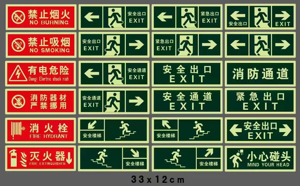 경고 표시 안전 출구 표시 비상 지침 표시 빛나는 발광 대피 경로 벽 스티커 도매스토어 가기