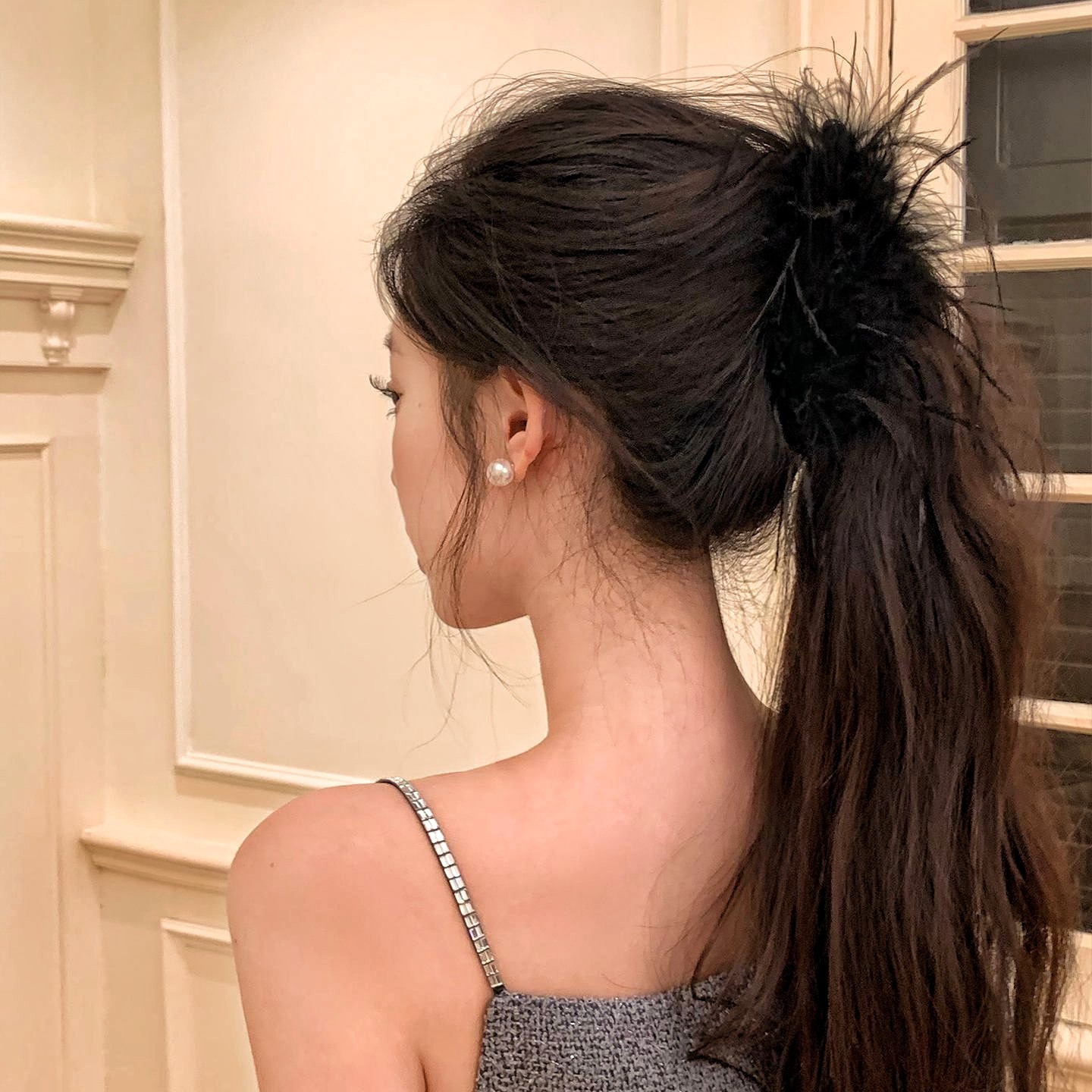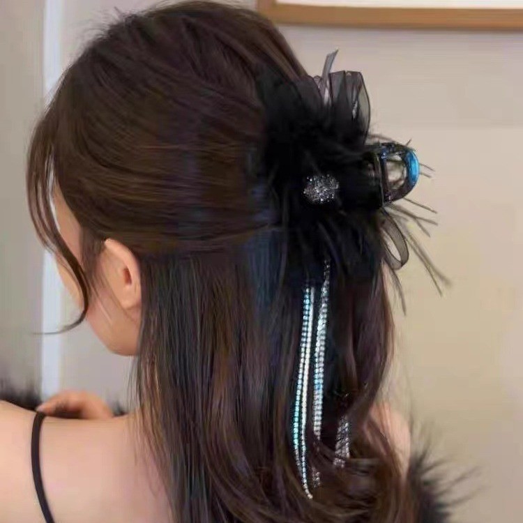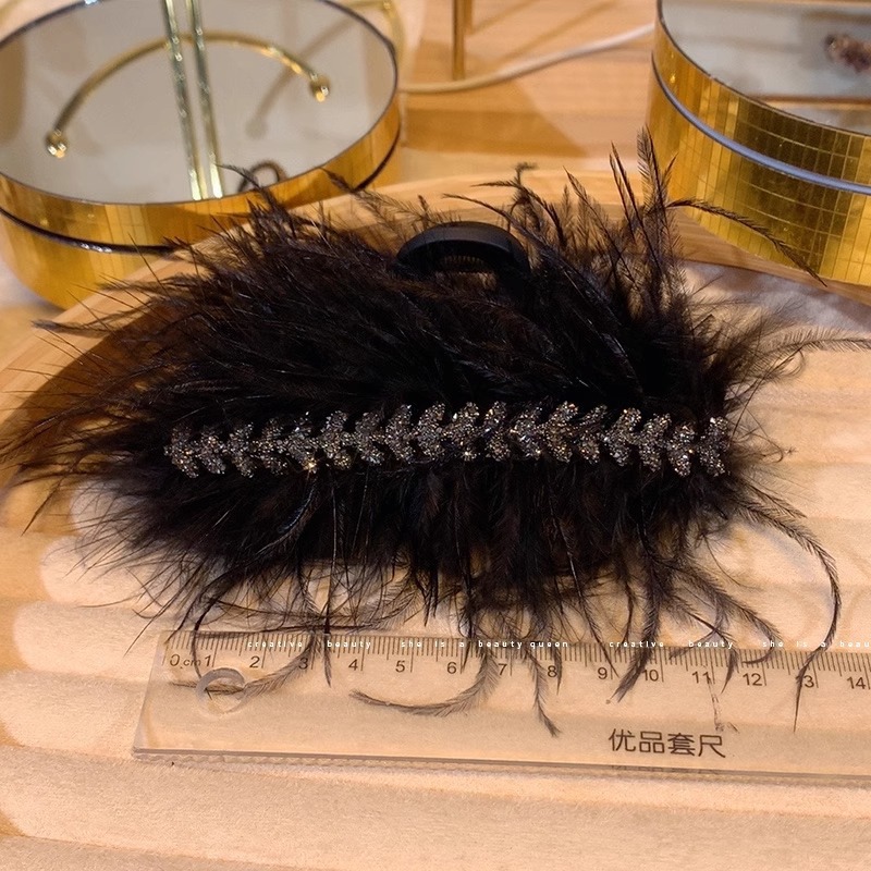 타조 봉제 블랙 깃털 대형 그랩 클립 여성용 헤드 하이 레벨 헤어 클립 헤드폰 상어 클립 헤어 클립 헤어 클립 클립스토어 가기