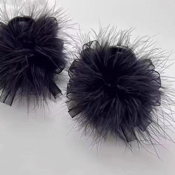 타조 봉제 블랙 깃털 대형 그랩 클립 여성용 헤드 하이 레벨 헤어 클립 헤드폰 상어 클립 헤어 클립 헤어 클립 클립