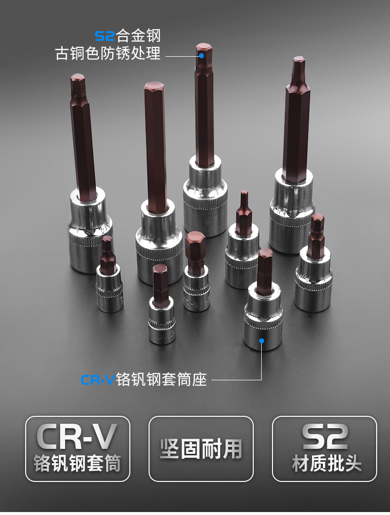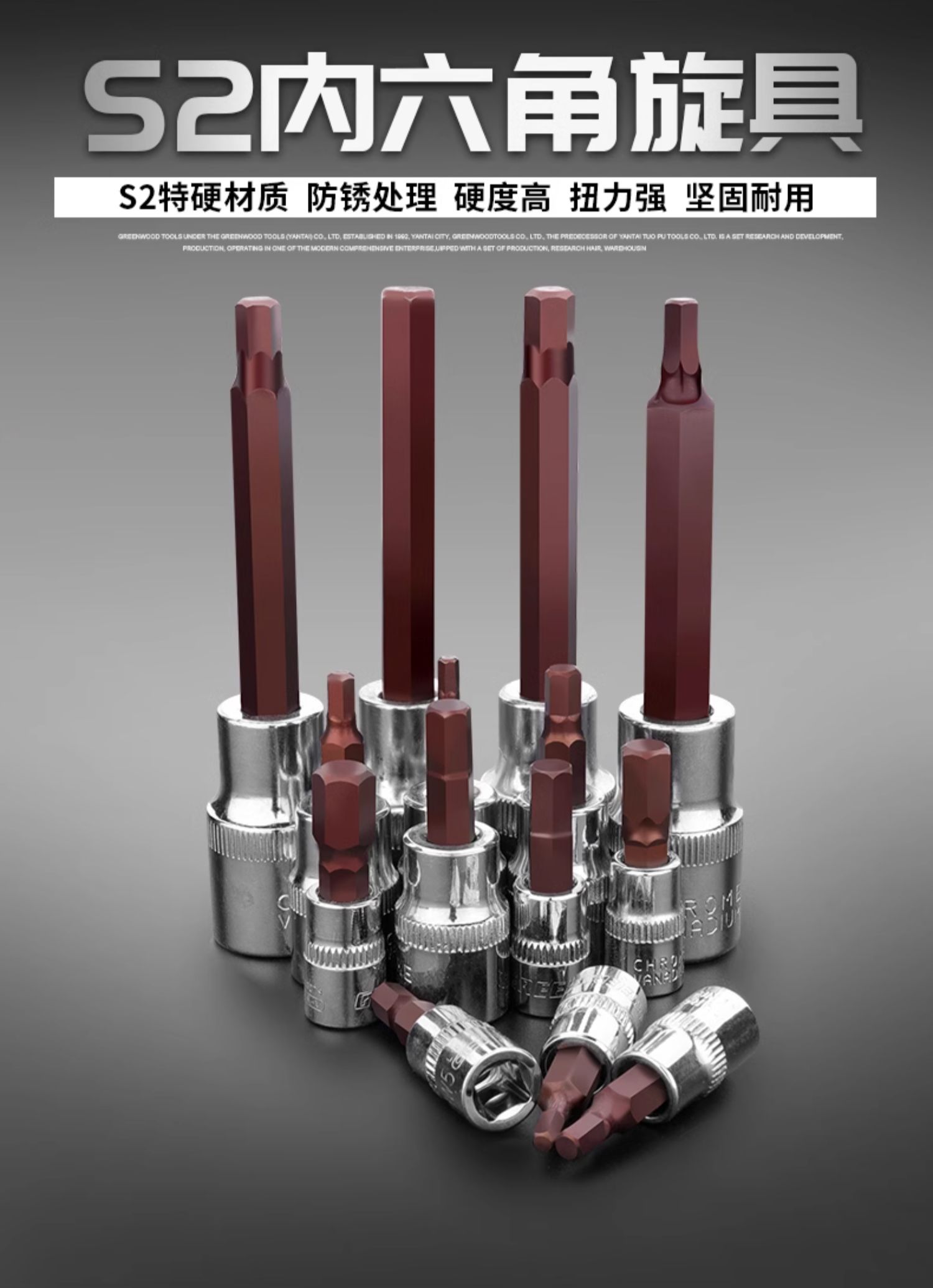 녹색 숲 육각형 소켓 헤드 공기 대포 소켓 헤드 세트 전기 공압 렌치 굴착 육각형 스크류 헤드