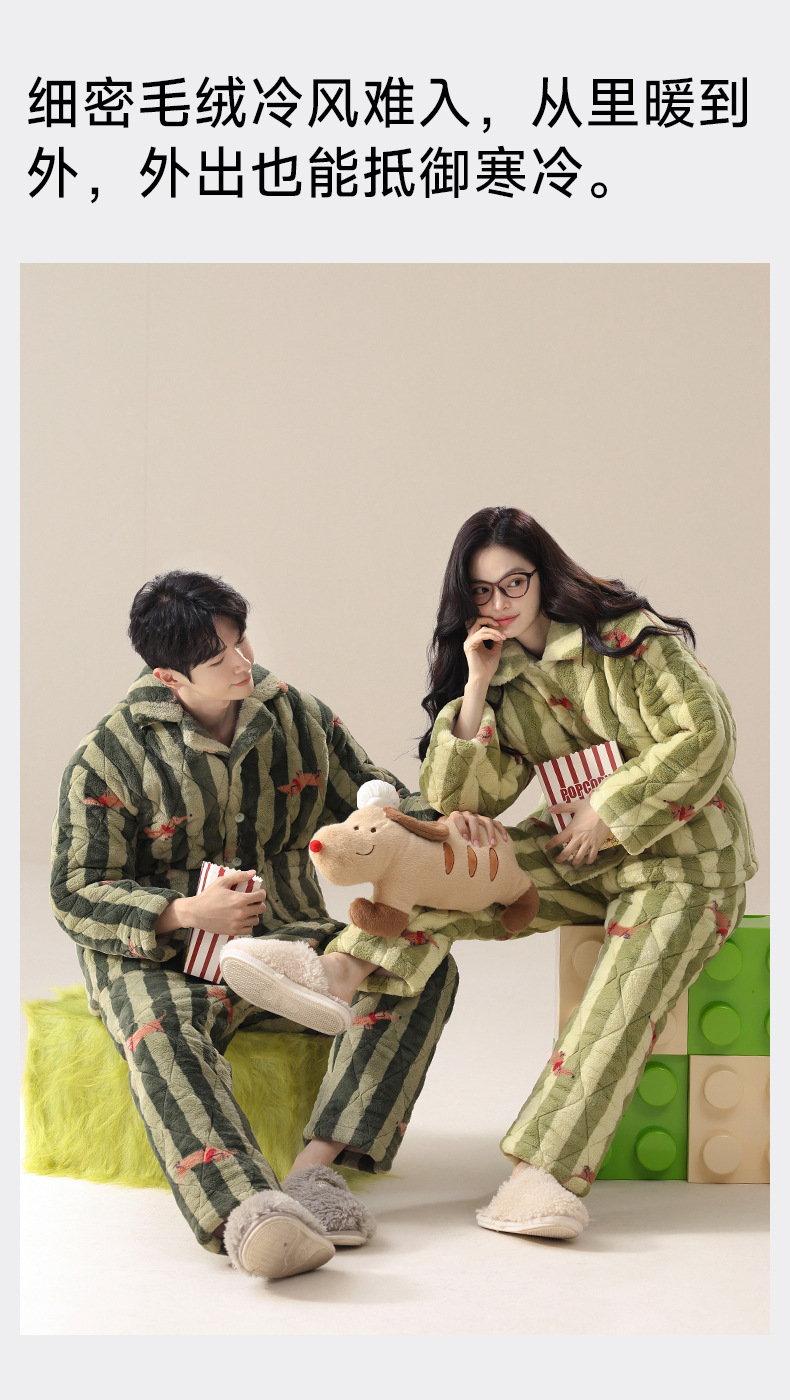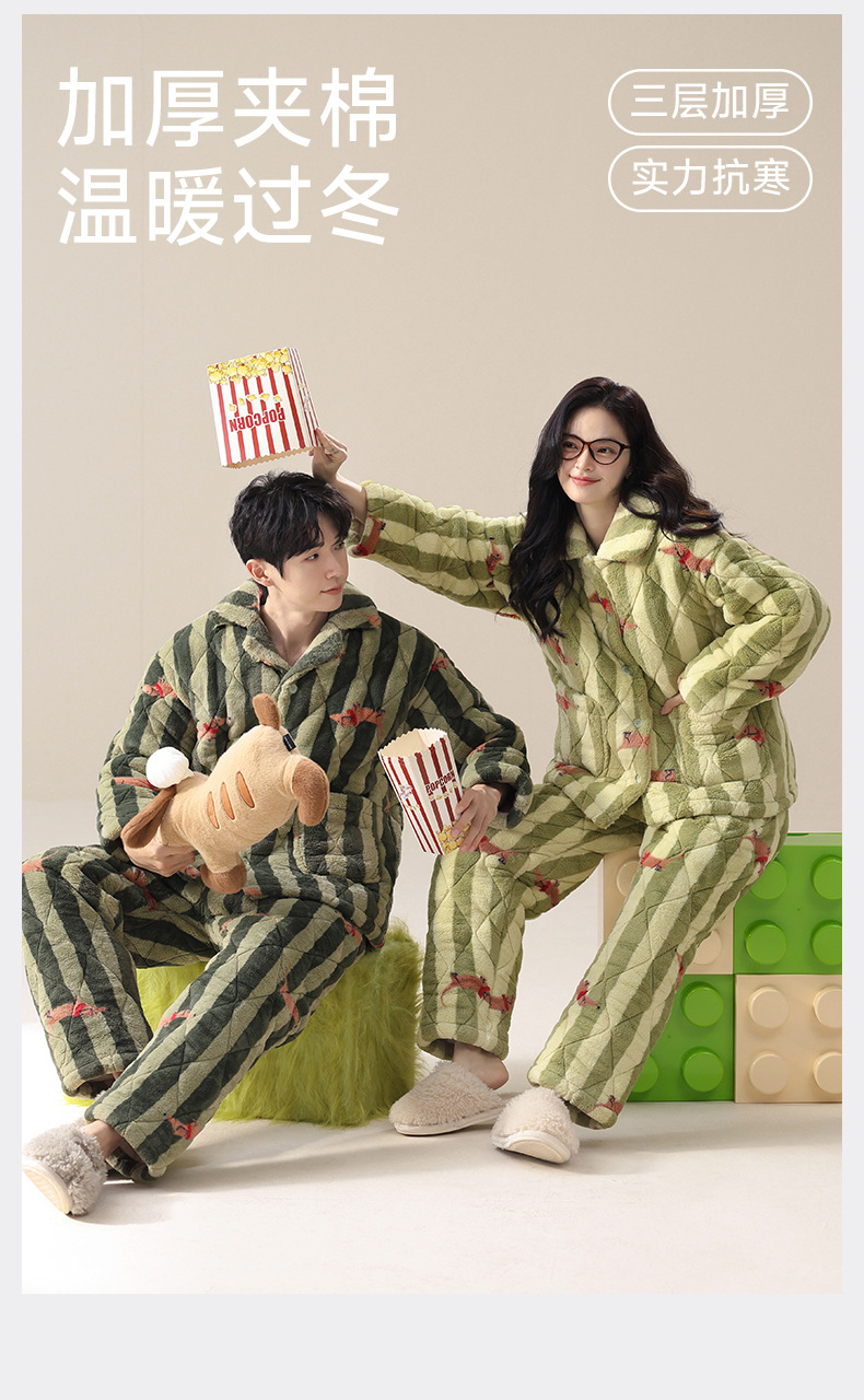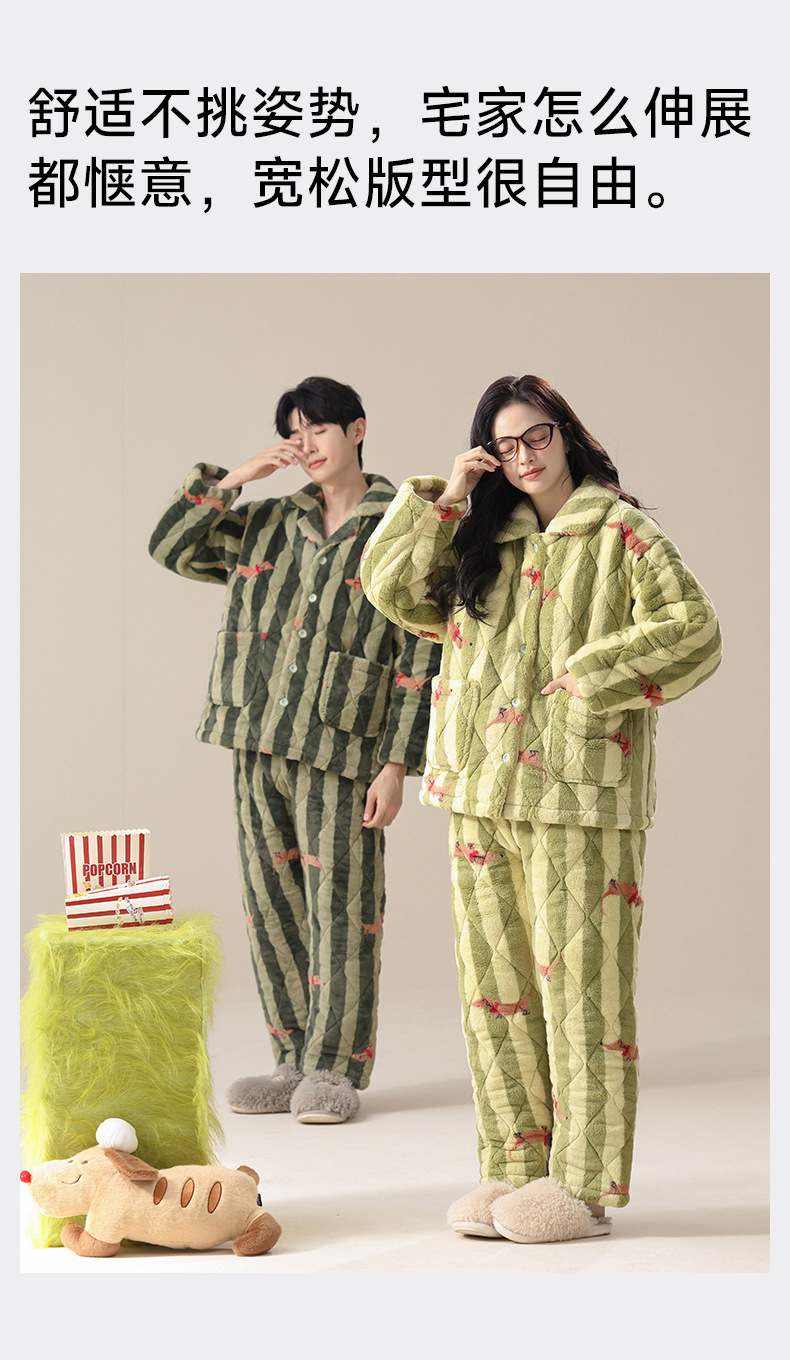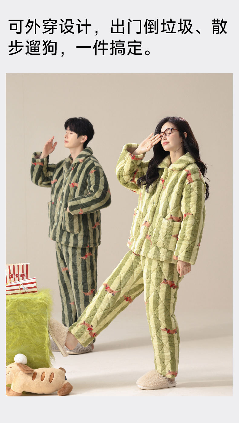 [면 따뜻한 옷] 겨울면 커플 파자마 두꺼운 산호 벨벳 따뜻한 남녀 벨벳 코튼 옷 홈 옷스토어 가기