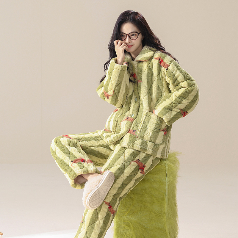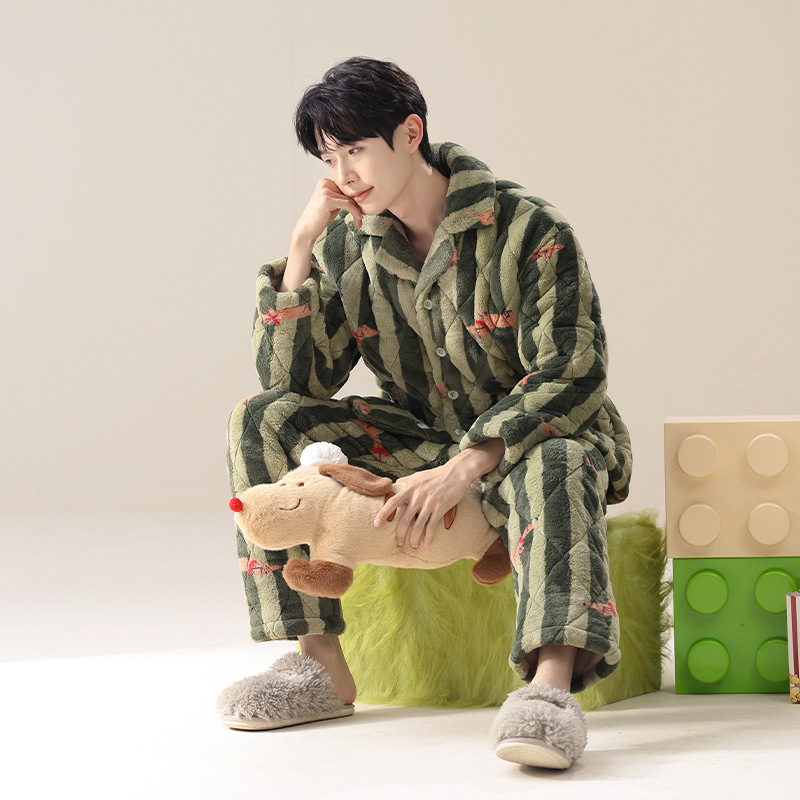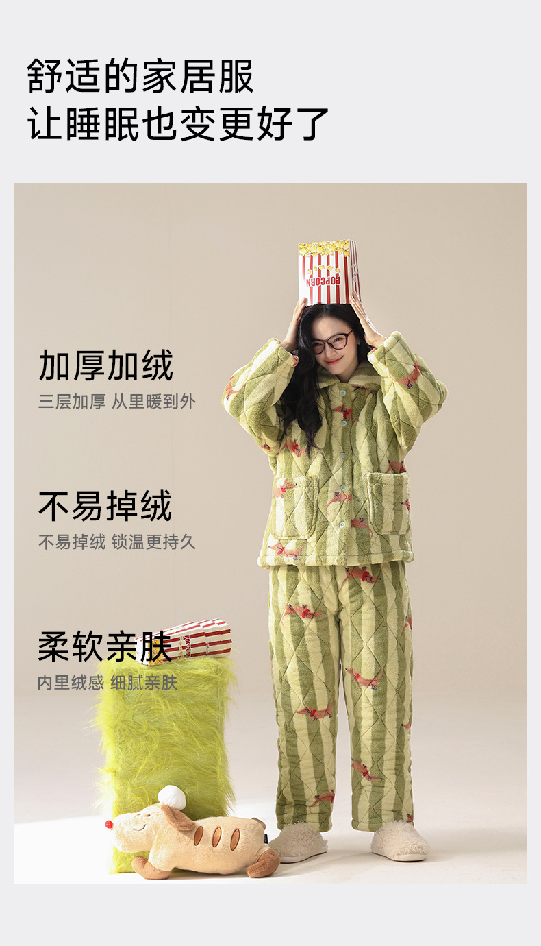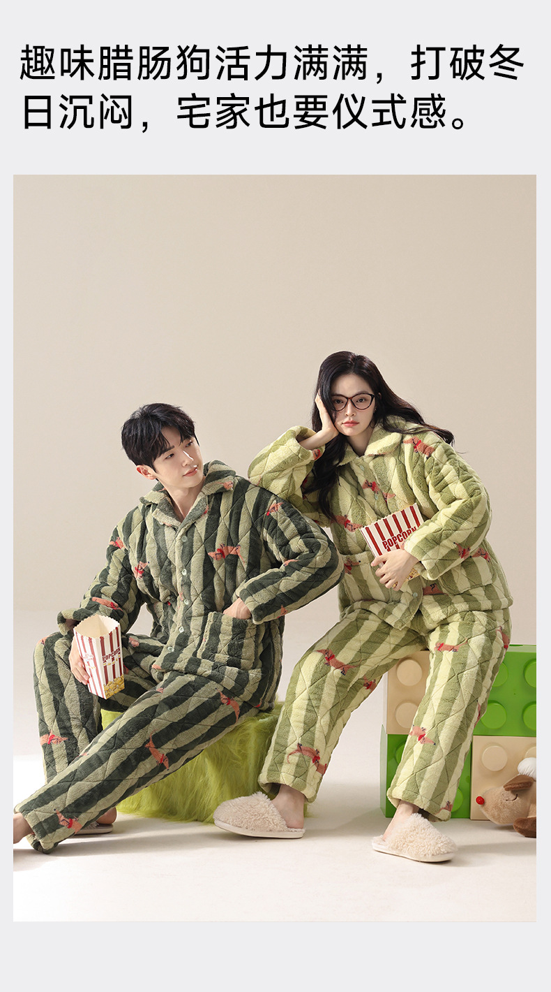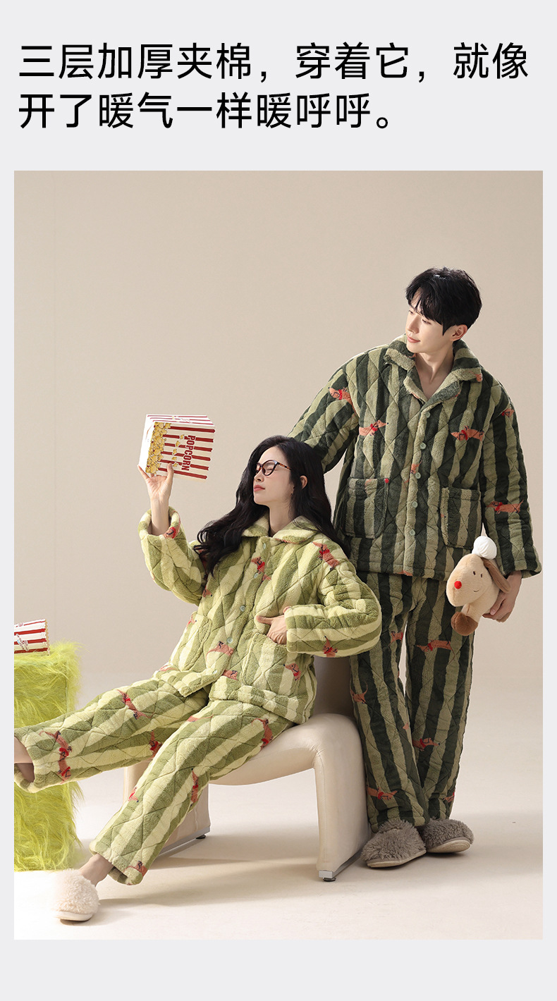 [면 따뜻한 옷] 겨울면 커플 파자마 두꺼운 산호 벨벳 따뜻한 남녀 벨벳 코튼 옷 홈 옷스토어 가기