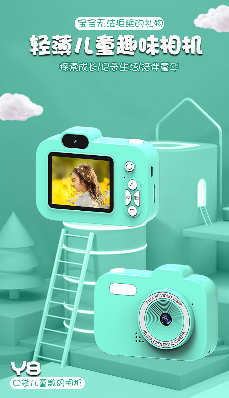 인기있는 새로운 Y8 어린이 카메라 미니 SLR 카메라 만화 장난감 디지털 카메라 카메라스토어 가기