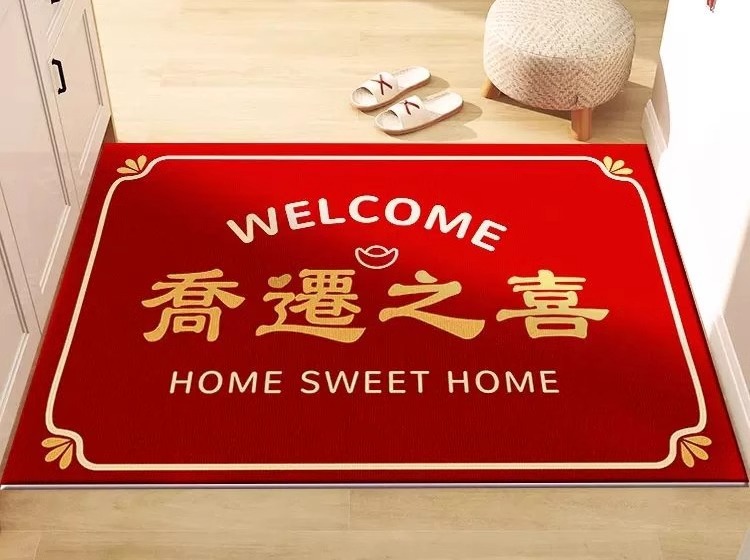 바이푸 크리스탈 벨벳 바닥 매트 입구 문 입구 매트 중국 붉은 축제 더러운 저항 쉬운 케어 카펫