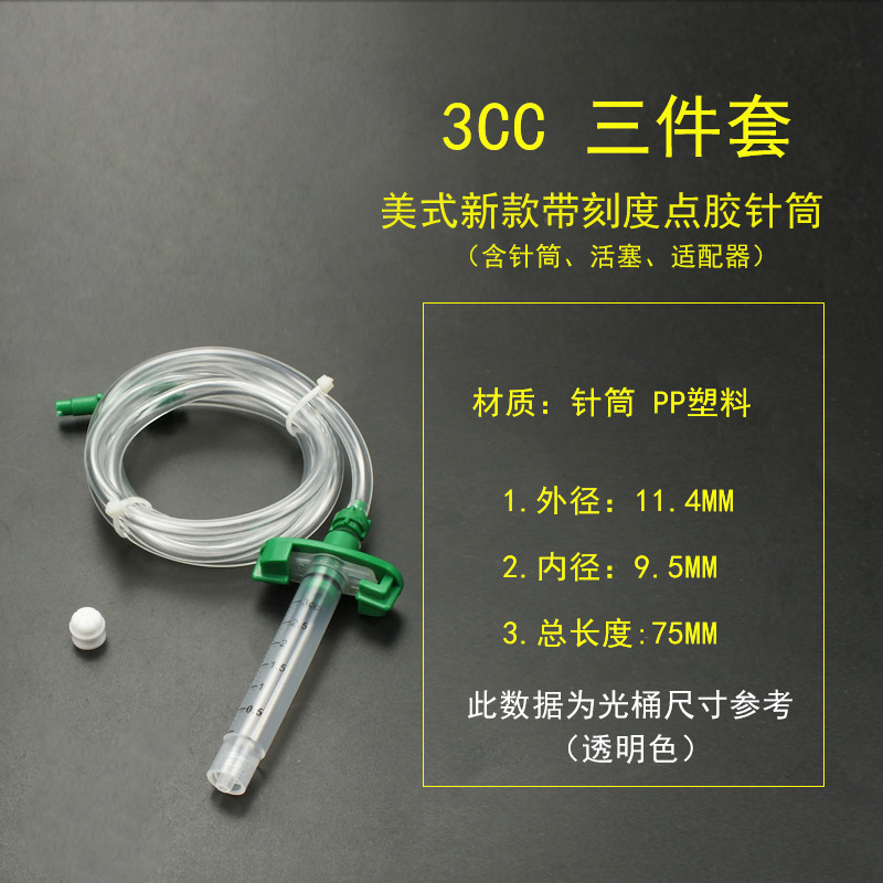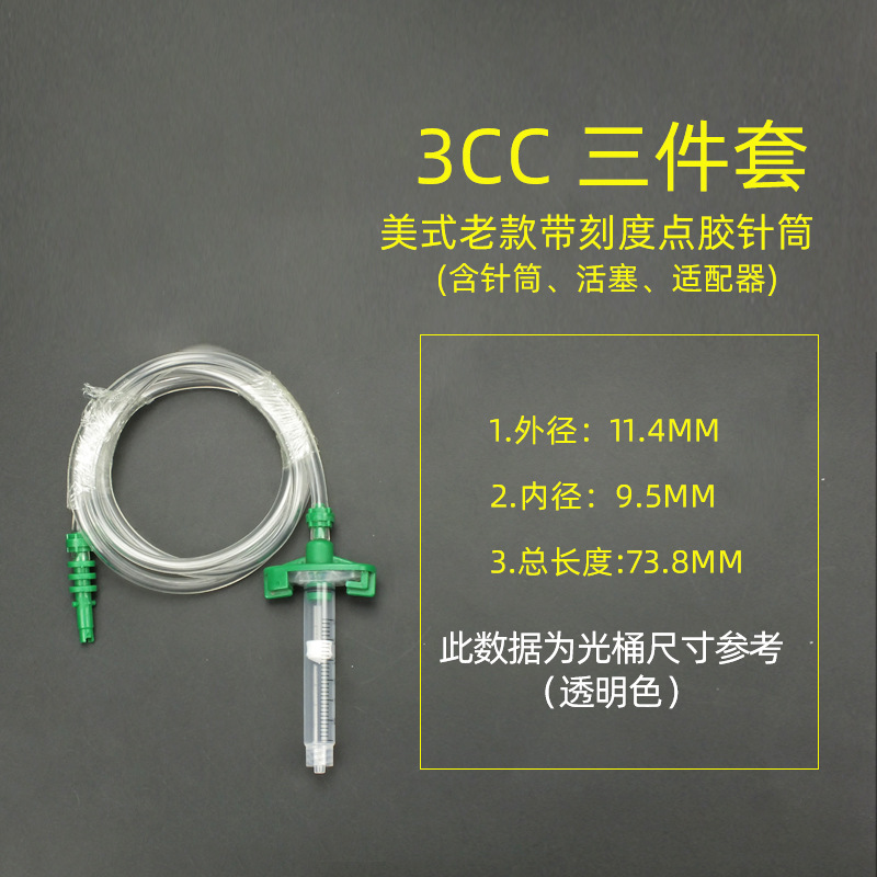 • 미국 신형 3cc 투명 리본 스케일 튜브 소형 세트 + 녹색 어댑터