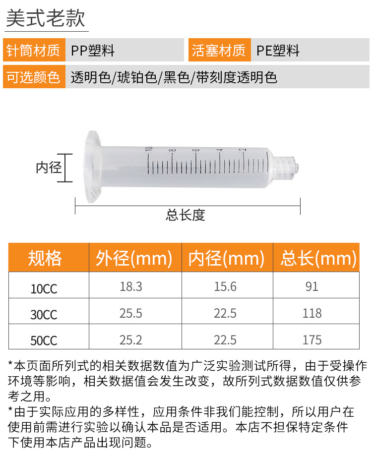 • 미국 구형 호박색 3CC(스케일 및 피스톤 포함)