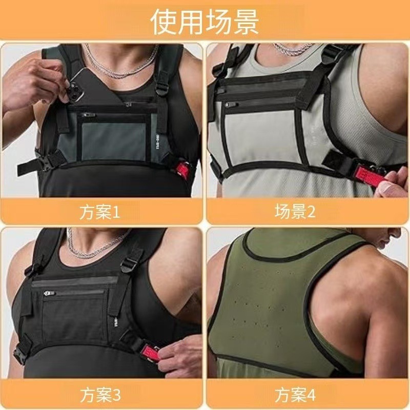 남자 조끼 가방 야외 스포츠 어깨 가슴 가방 조정 가능한 어깨 끈 피트니스 방수 휴대 전화 가방 등산 가방스토어 가기