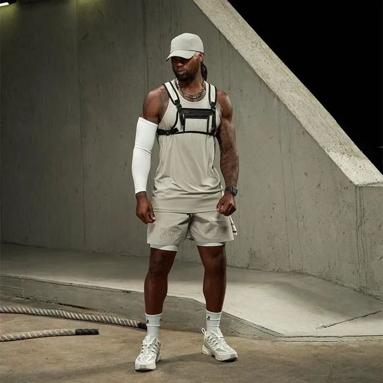 남자 조끼 가방 야외 스포츠 어깨 가슴 가방 조정 가능한 어깨 끈 피트니스 방수 휴대 전화 가방 등산 가방