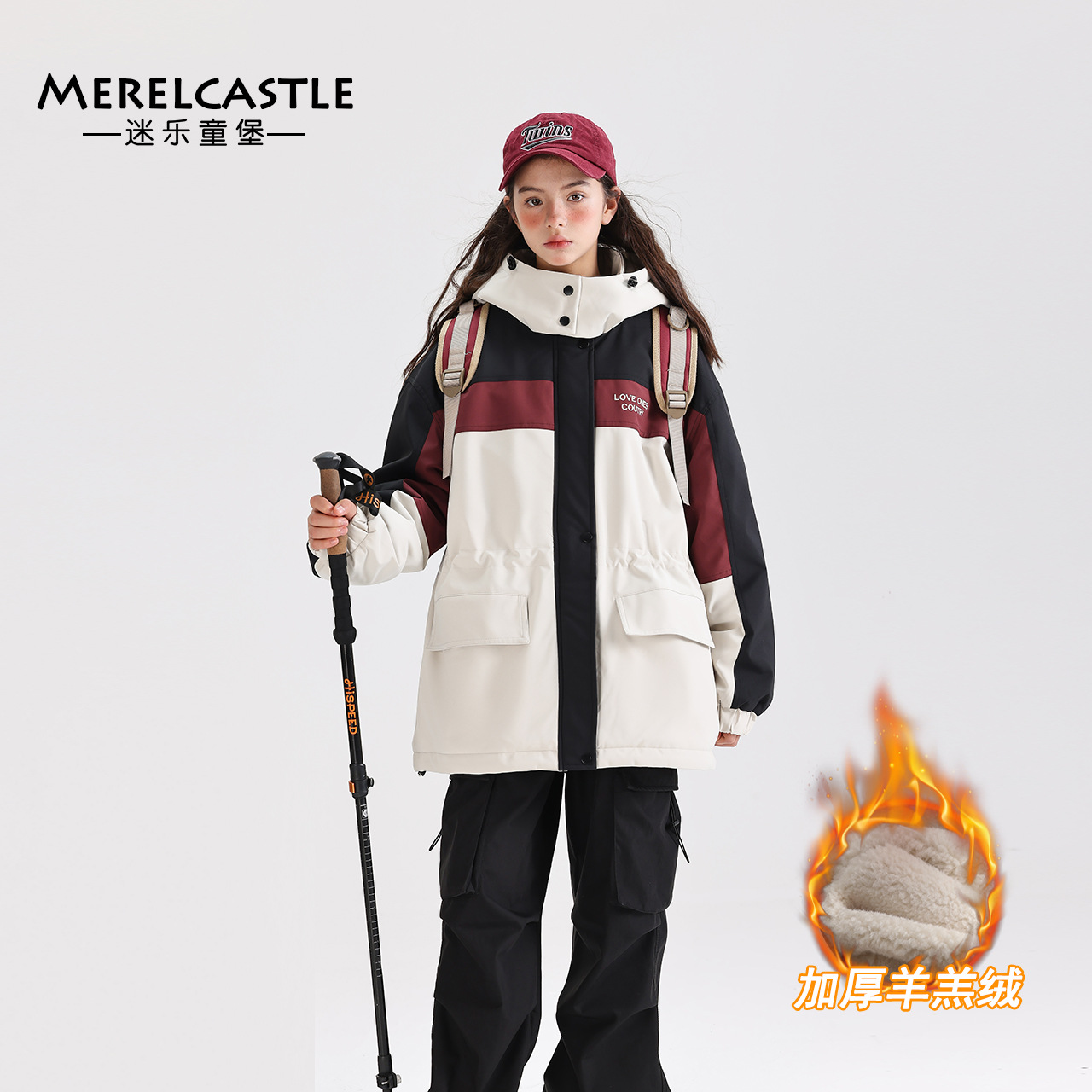 소녀 기모 재킷 2024 년 가을 겨울 새 소녀 겨울 코트 두꺼운 양고기 벨벳 탑스토어 가기