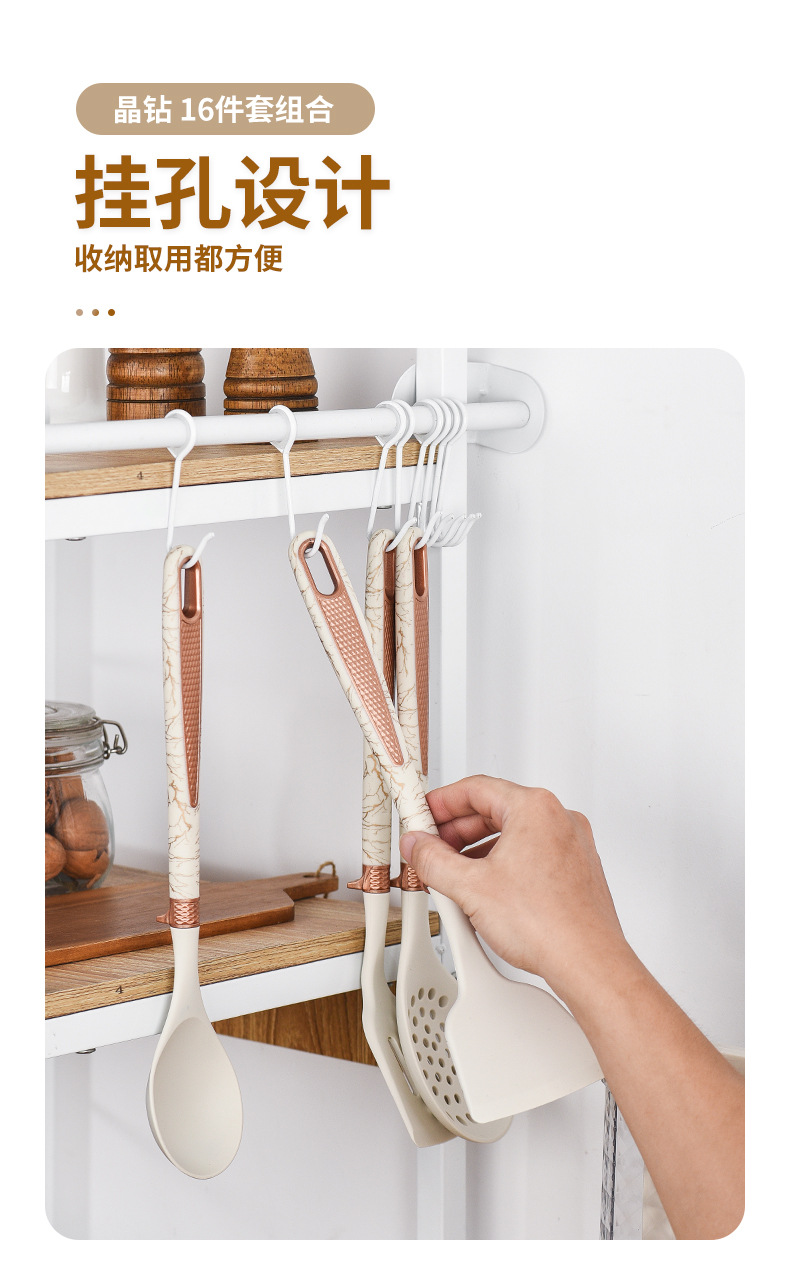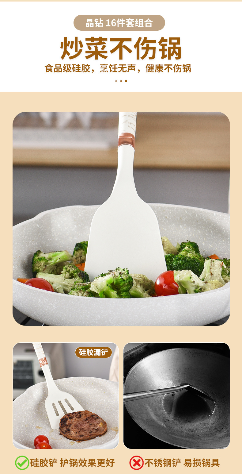 실리콘 주방용품 16 조각 음식 학년 요리 비 스틱 팬 스푼 삽 가정용 칼 다기능 칼 조합 세트스토어 가기
