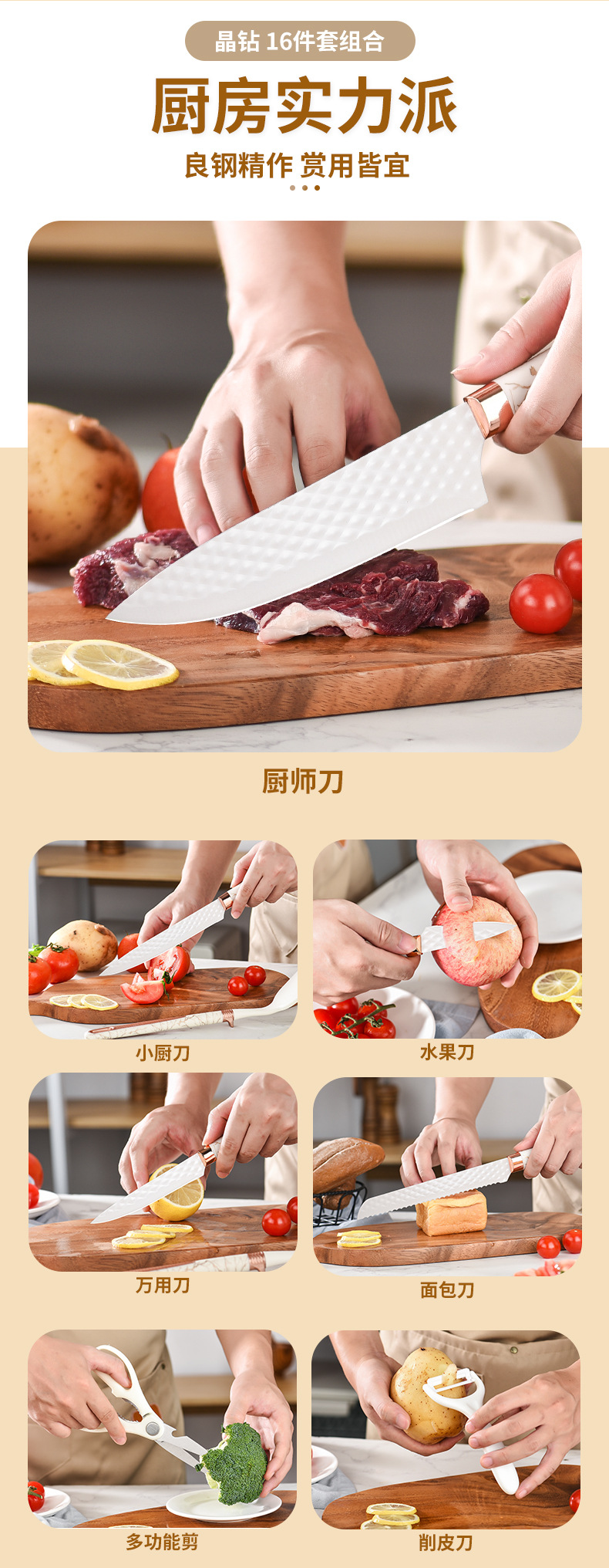 • 다이아몬드무늬 손잡이 주방용품 16종 세트(화이트)