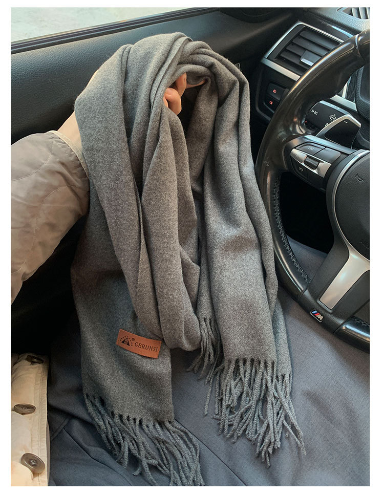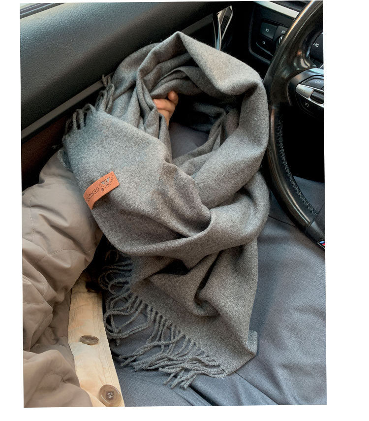 한국식 회색 모조 캐시미어 스카프 여자 가을과 겨울 두꺼운 따뜻한 학생 커플 스카프 남자 올매치 유행 목도리