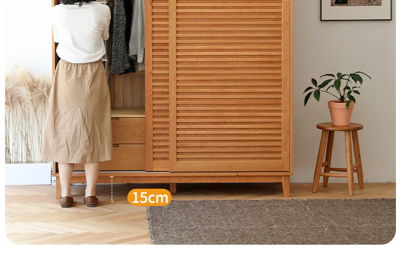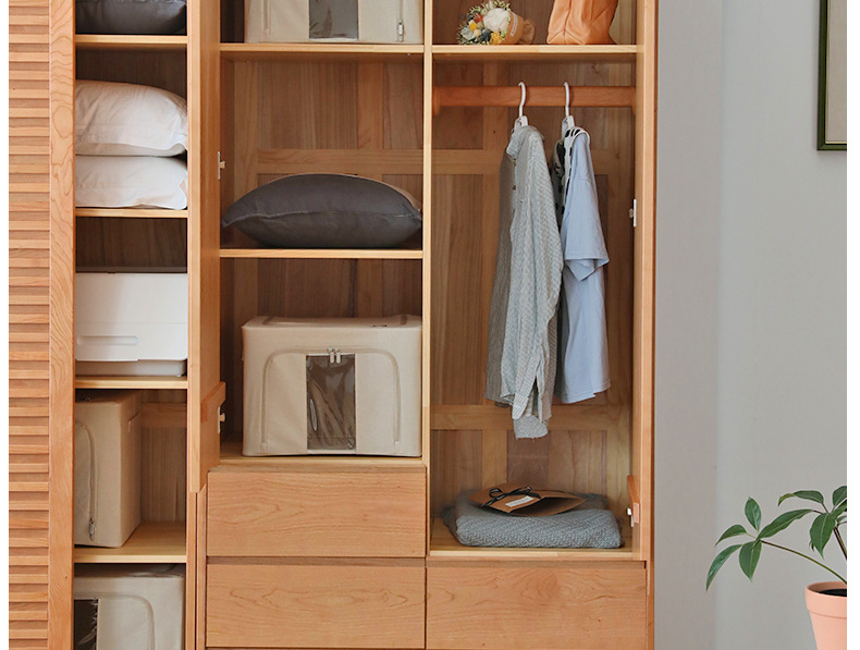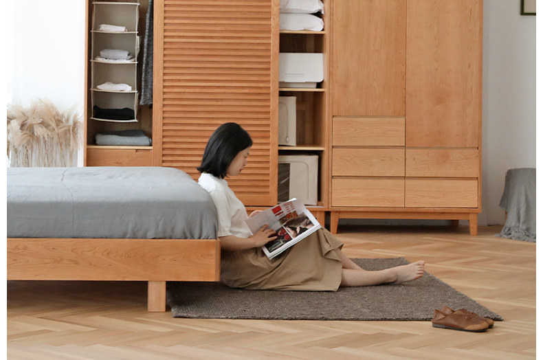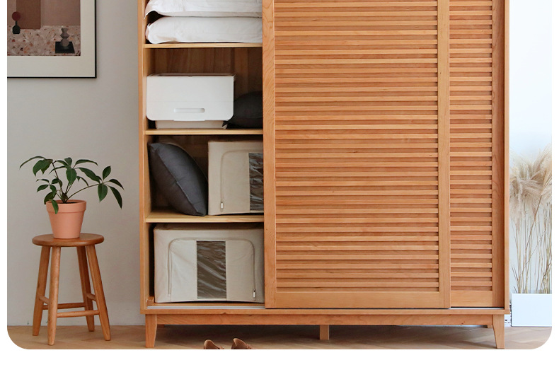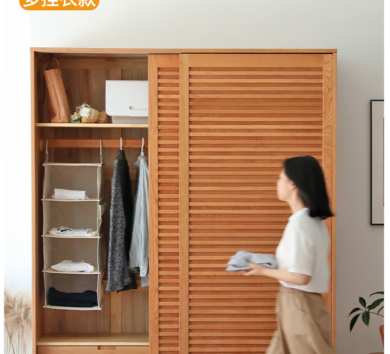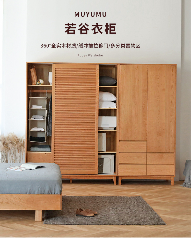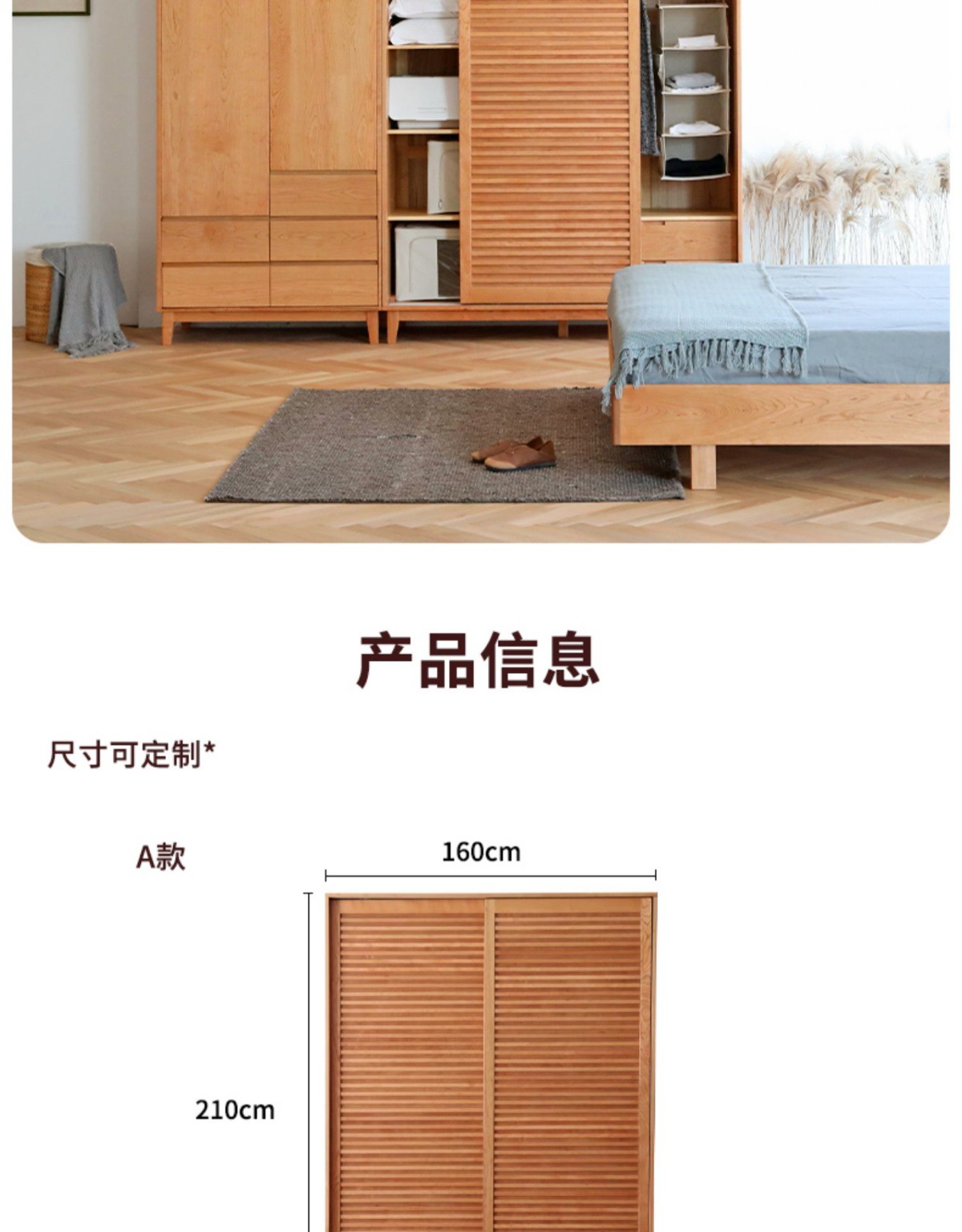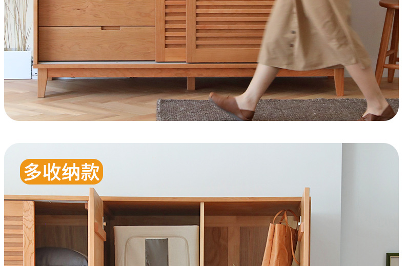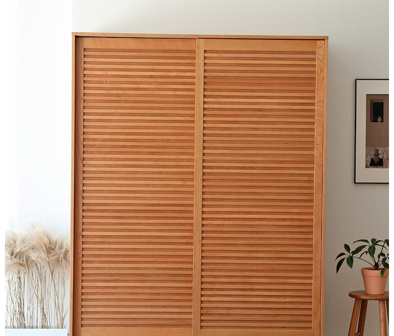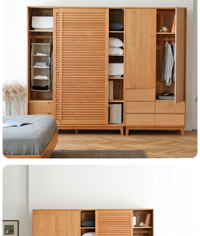 북유럽 솔리드 우드 옷장 이동 도어 체리 우드 슬라이딩 도어 옷장 간단한 현대 침실 더블 도어 셔터 조합스토어 가기