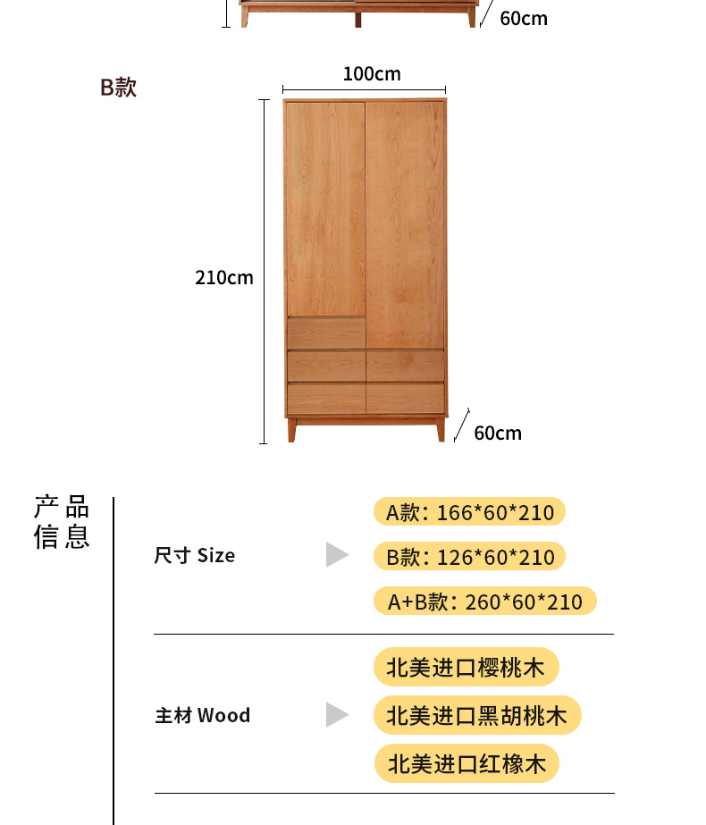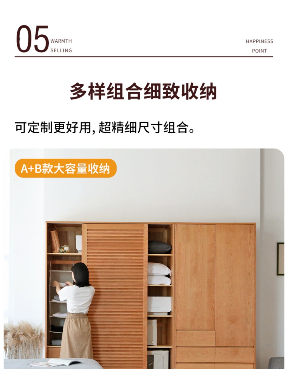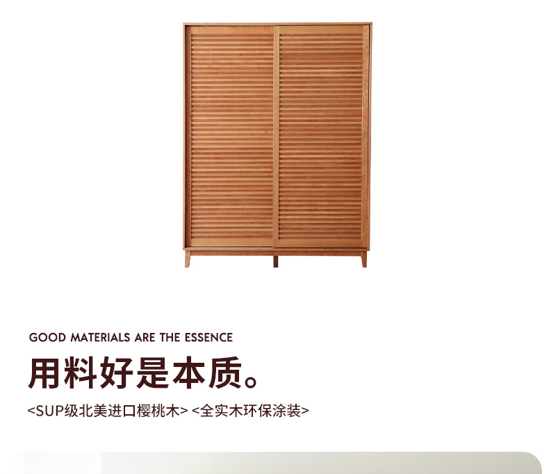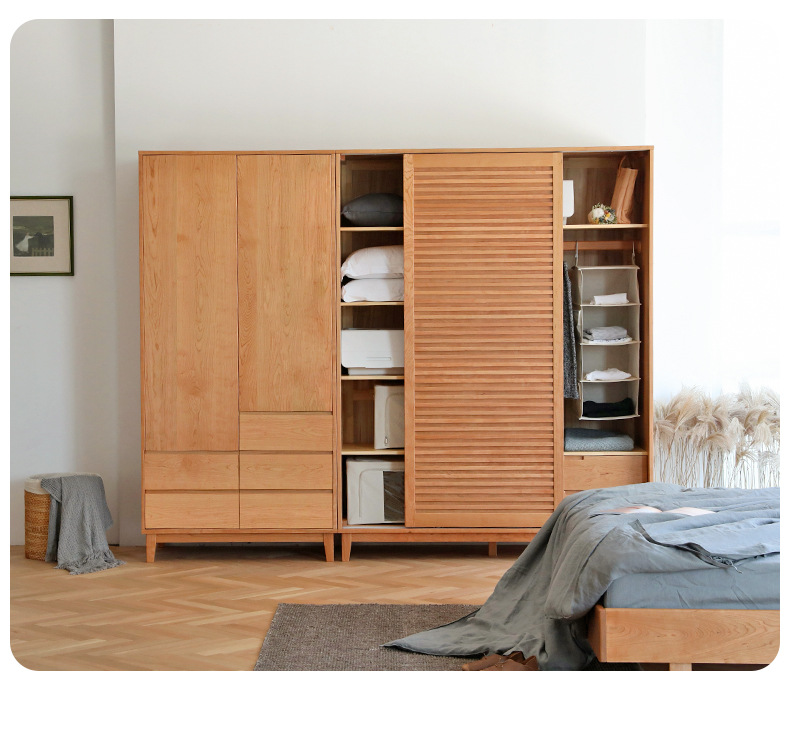 북유럽 솔리드 우드 옷장 이동 도어 체리 우드 슬라이딩 도어 옷장 간단한 현대 침실 더블 도어 셔터 조합
